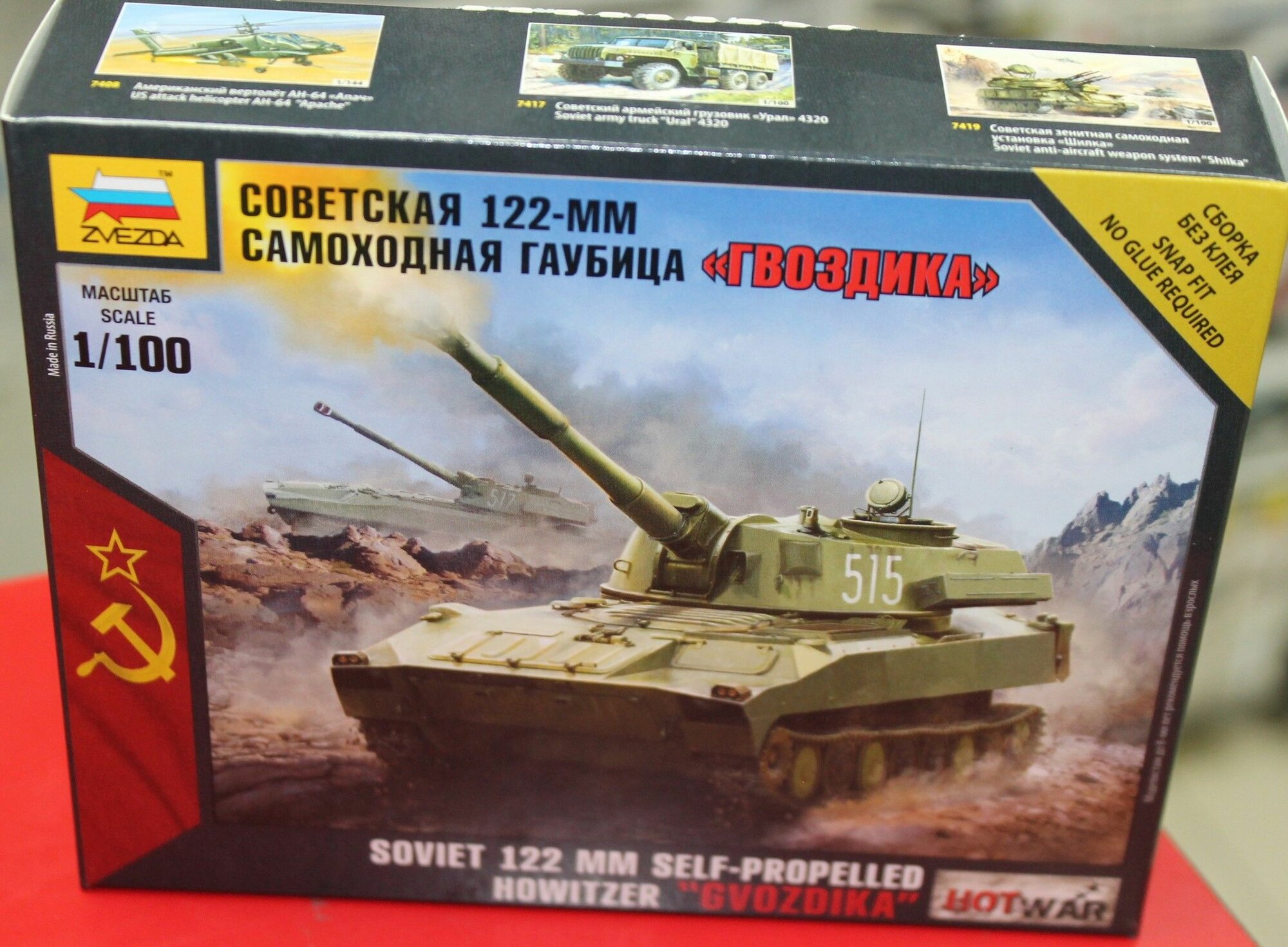 Сборная модель 7421 Советская 122-мм самоходная гаубица "Гвоздика" 1:100 Звезда