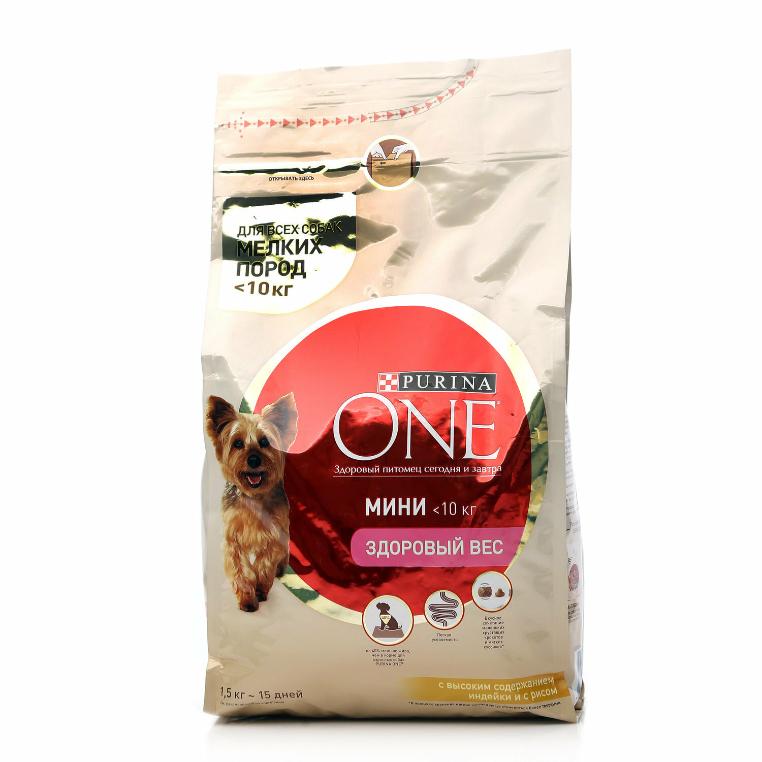 PURINA ONE мини здоровый ВЕС для взрослых собак маленьких пород с индейкой и рисом (1,5 кг)