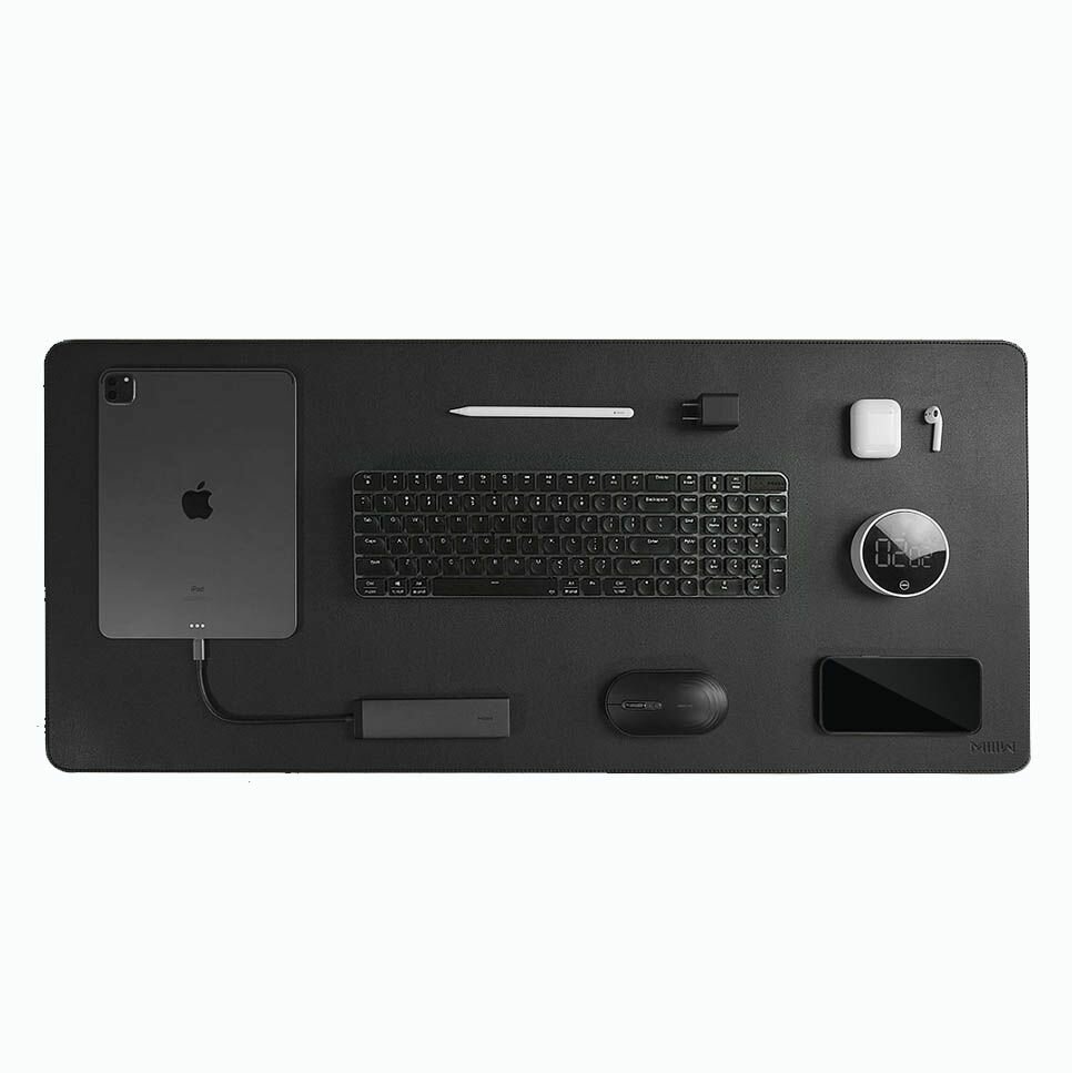 Большой коврик 900 х 400 мм под клавиатуру и мышь из экокожи Xiaomi MIIIW Mouse Pad (MWMLV01), Цвет: черный