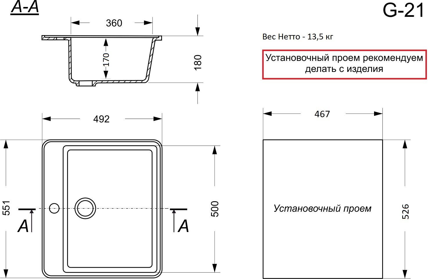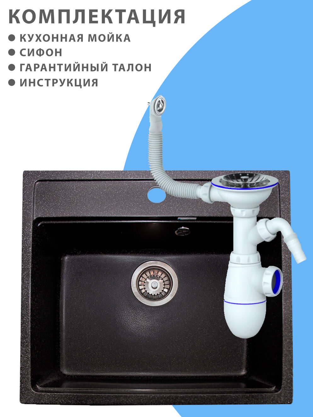 СохранитьВрезная мойка для кухни из искусственного камня GranAlliance, черная с сифоном (551х492х180) интересное: