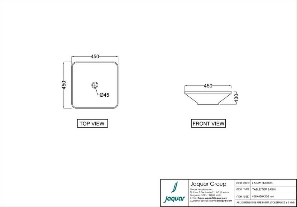 Раковина накладная Jaquar LAS-WHT-91903 45 см белый