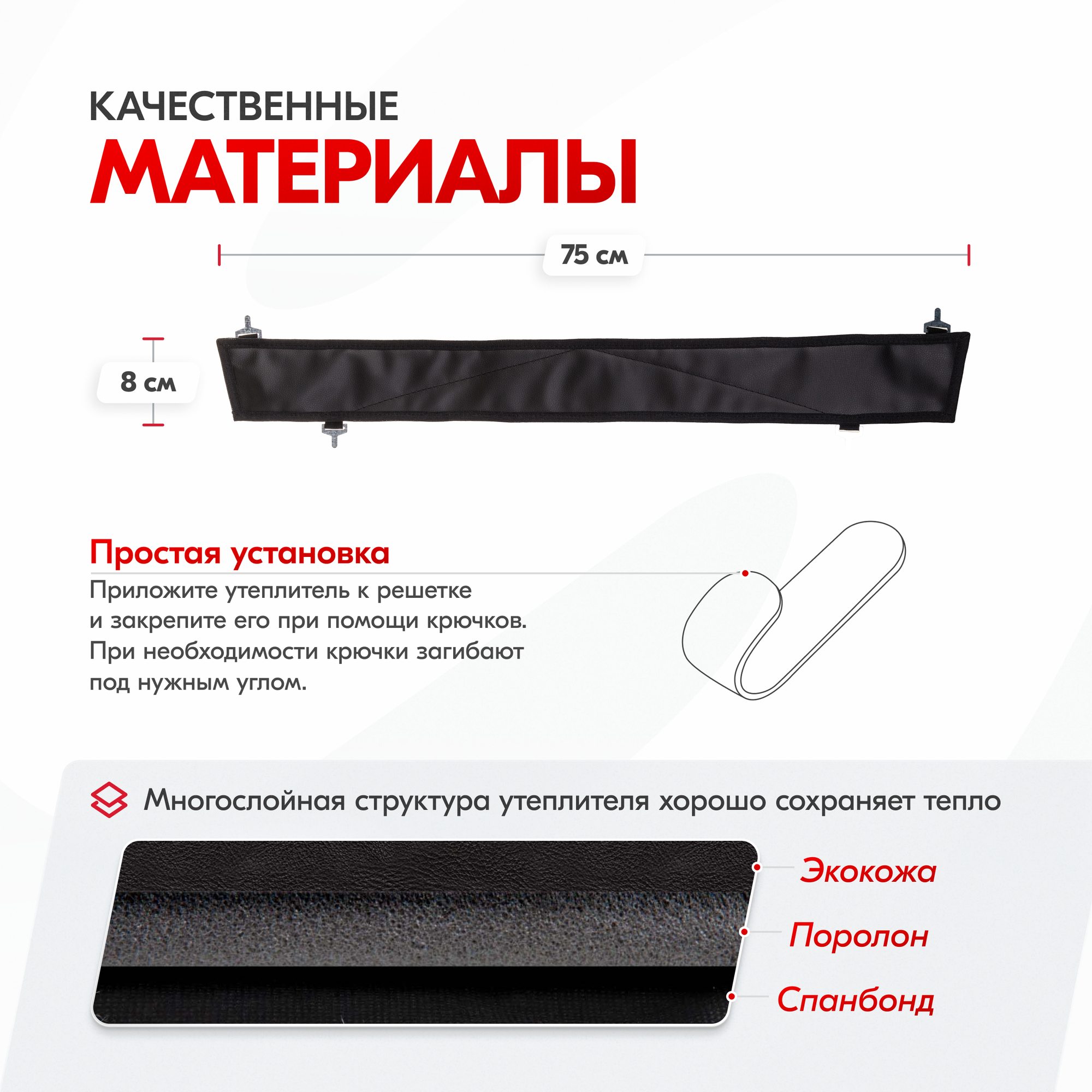 | Подробная комплектация | утеплитель радиатора - 1 шт. крючки - 4 шт., пакет |