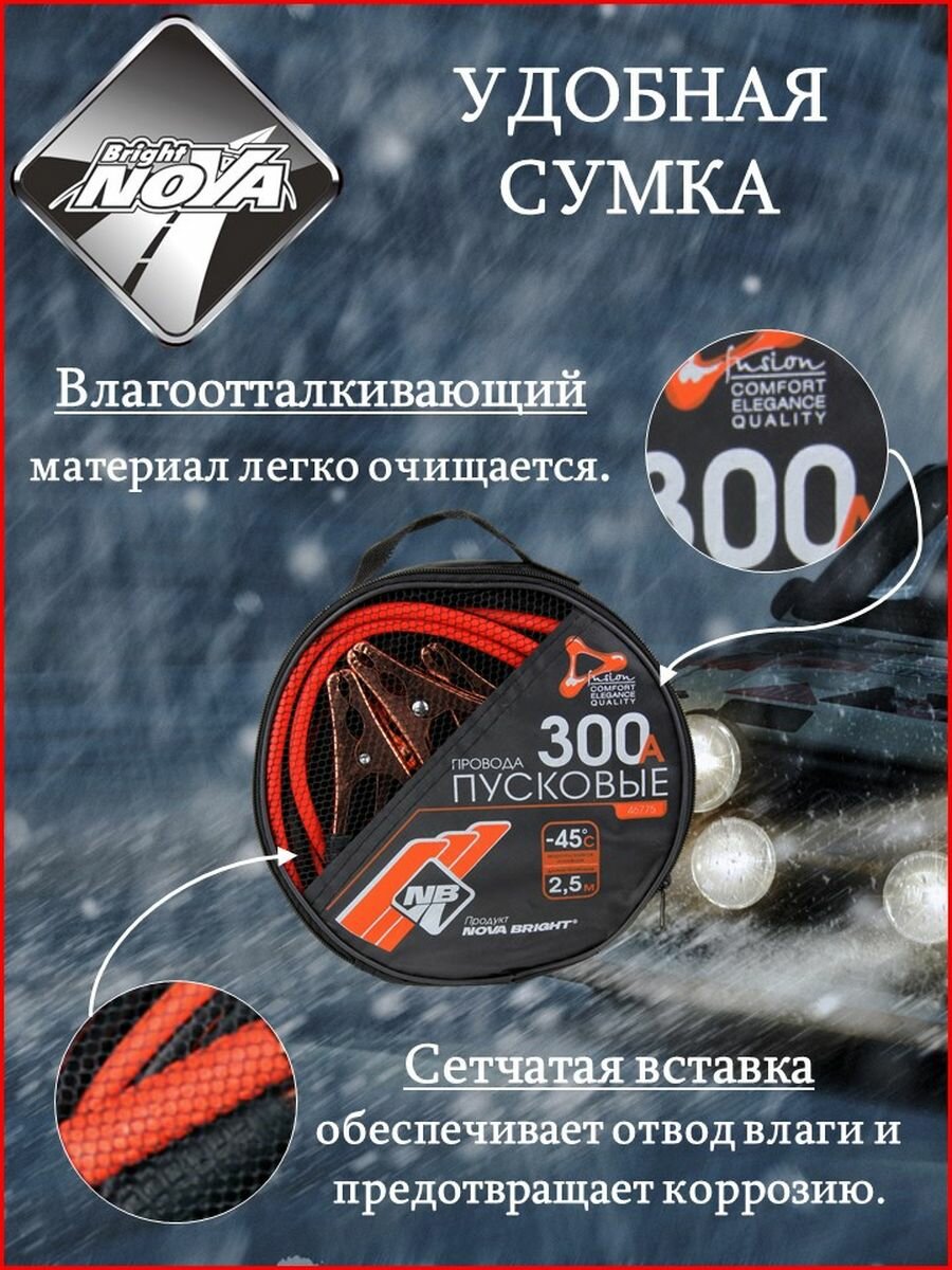 Провода пусковые Nova Bright-fusion 300 А 2,5 м в сумке морозостойкие до -45*С NOVA-BRIGHT 46775 | цена за 1 шт