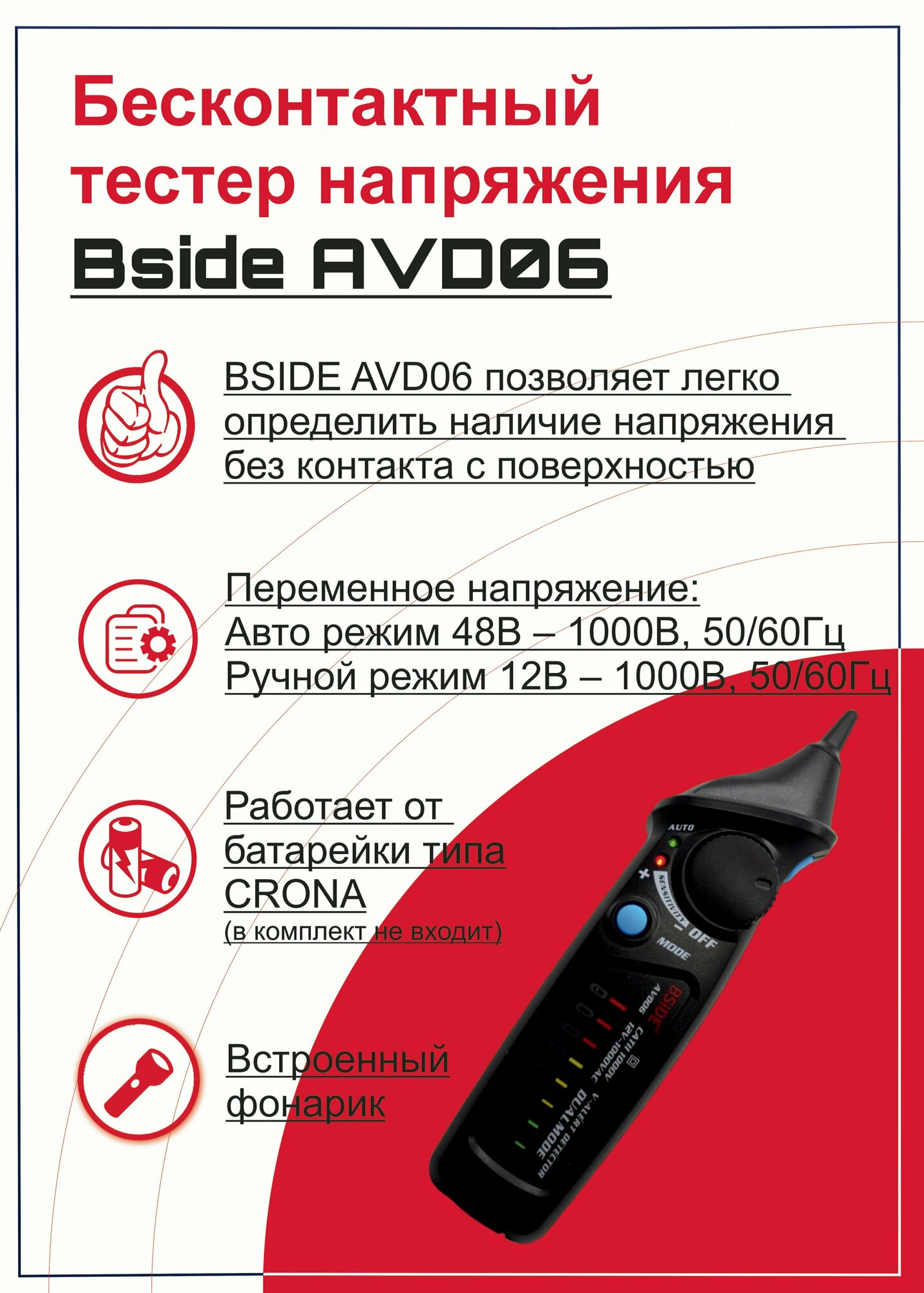 Индикатор напряжения Bside AVD06 бесконтактный (064-0009) . интересное: