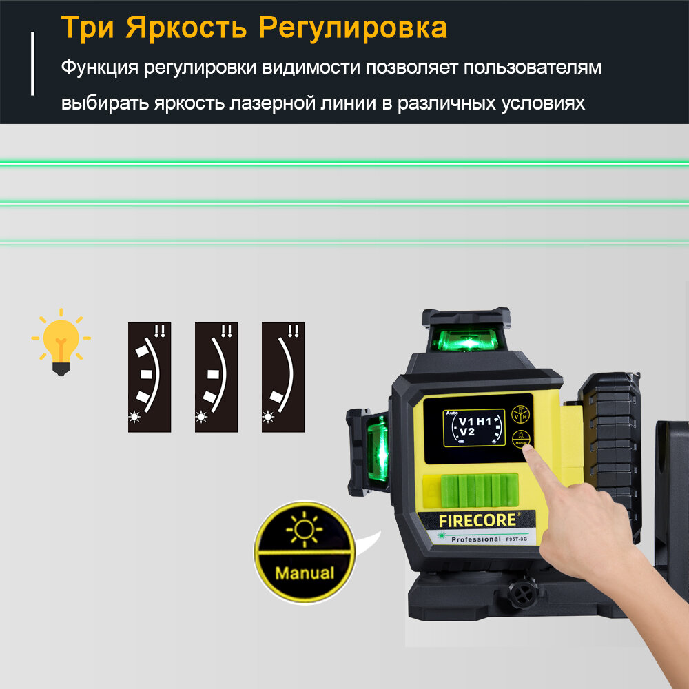 Лазерный уровень Firecore F95T-3G , 3D ,12 лучей , в кейсе