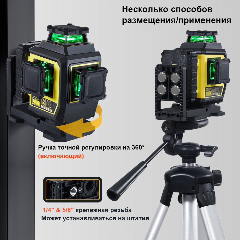 Лазерный уровень/нивелир FIRECORE F95T-3G 12 Линий,Зеленый луч,чемодан,с встроенным L-образным магнитным кронштейном, с штатив 1 м