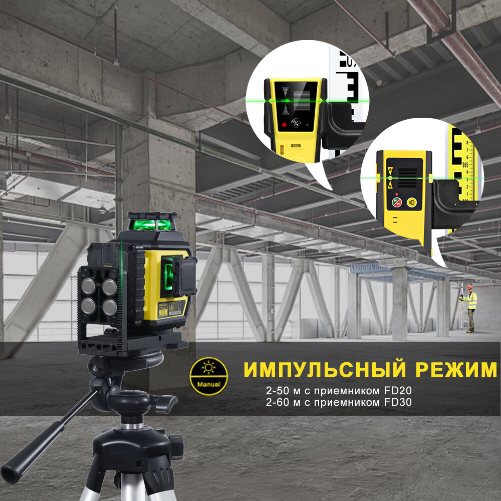 Лазерный уровень/нивелир FIRECORE F95T-3G 12 Линий,Зеленый луч,чемодан,с встроенным L-образным магнитным кронштейном, с приемником FD30