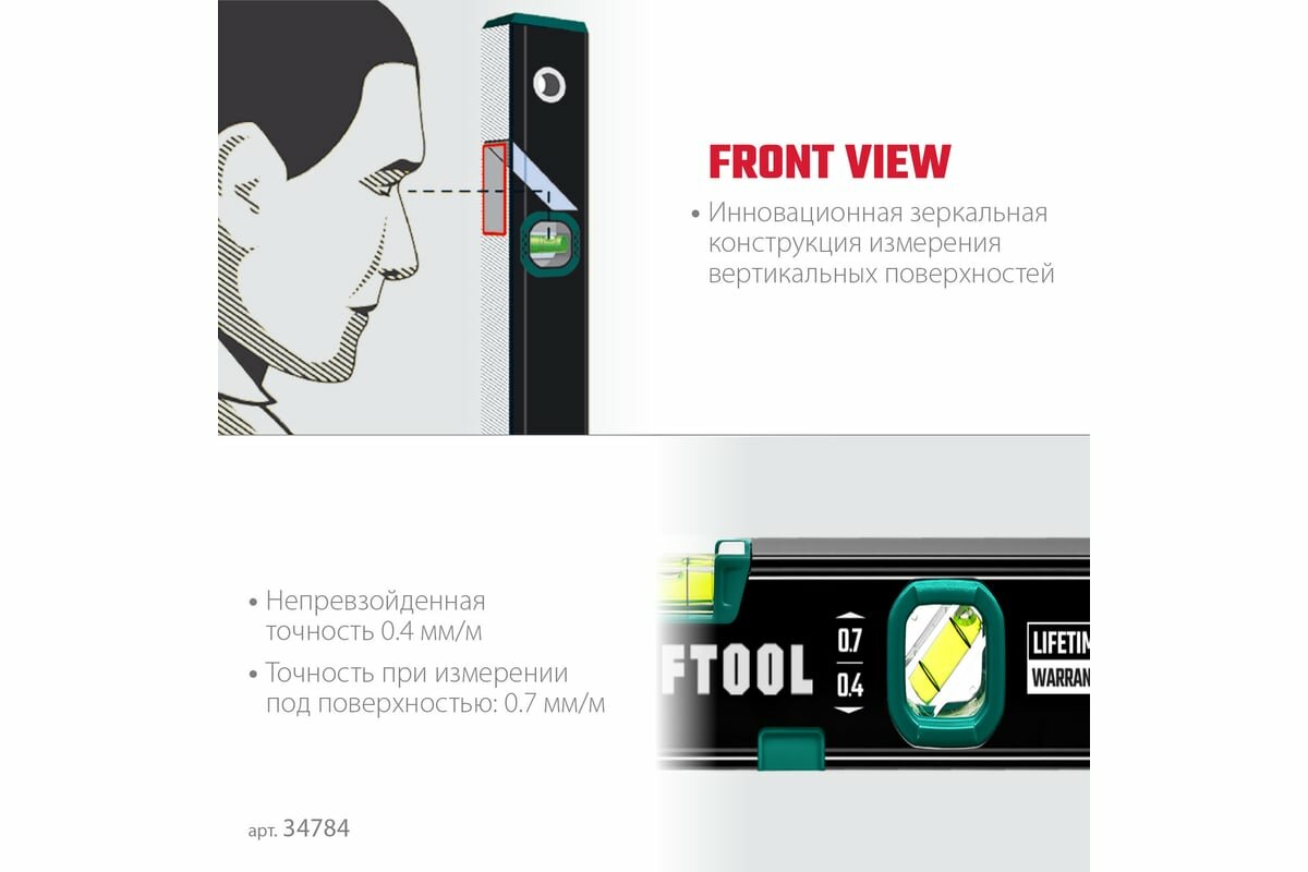 Уровень Kraftool A-RATE CONTROL 600 мм, сверхпрочный уровень с зеркальным глазком