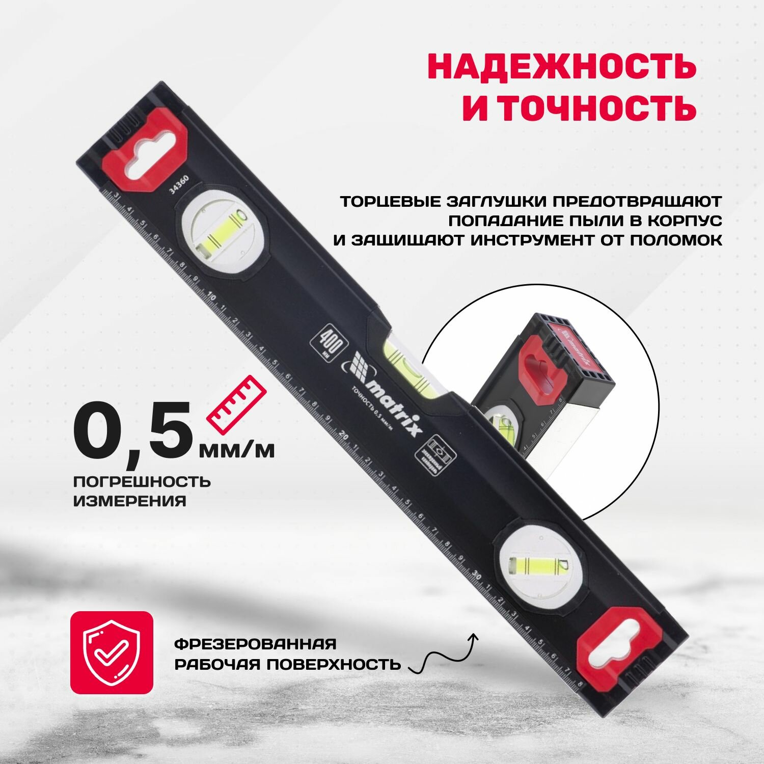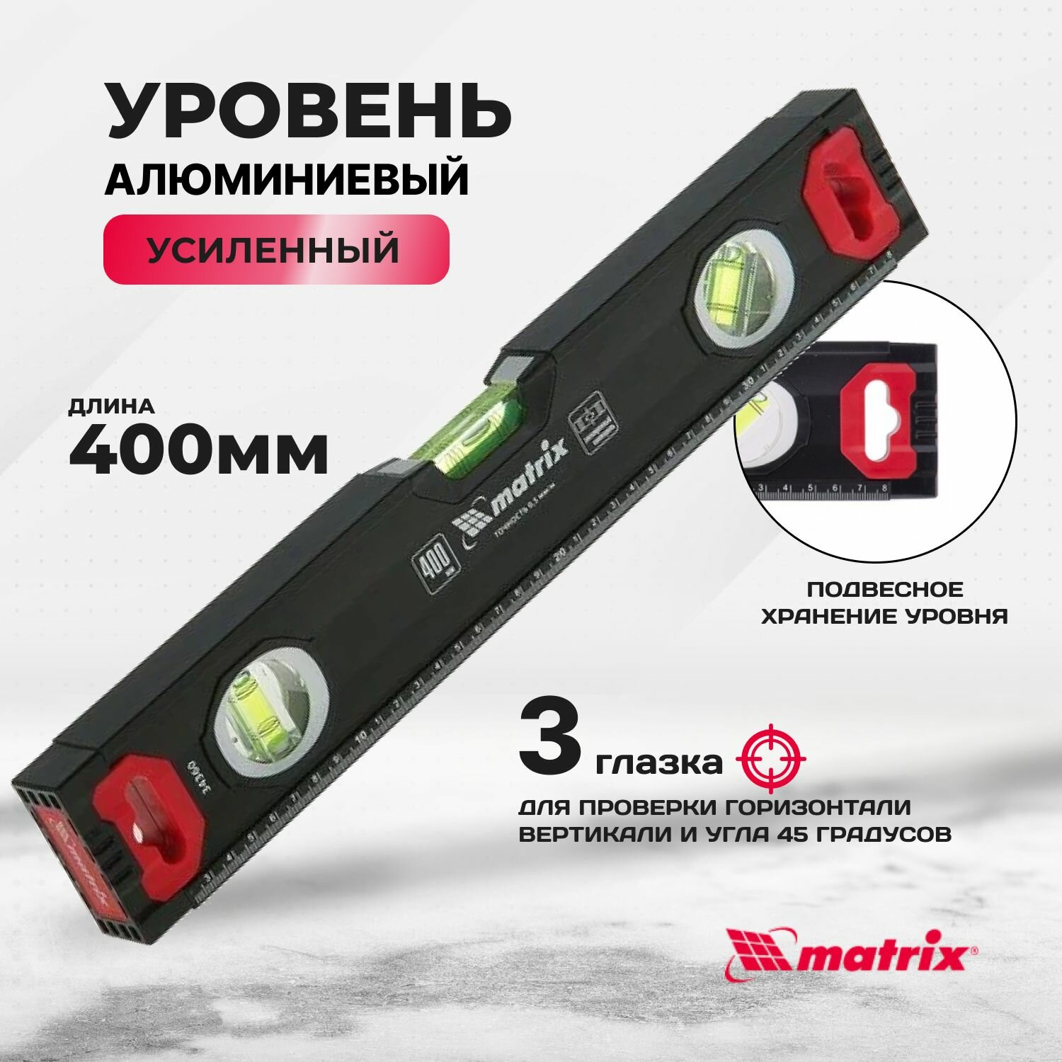 MATRIX Уровень алюминиевый усиленный 400 мм MATRIX 34360 интересное: