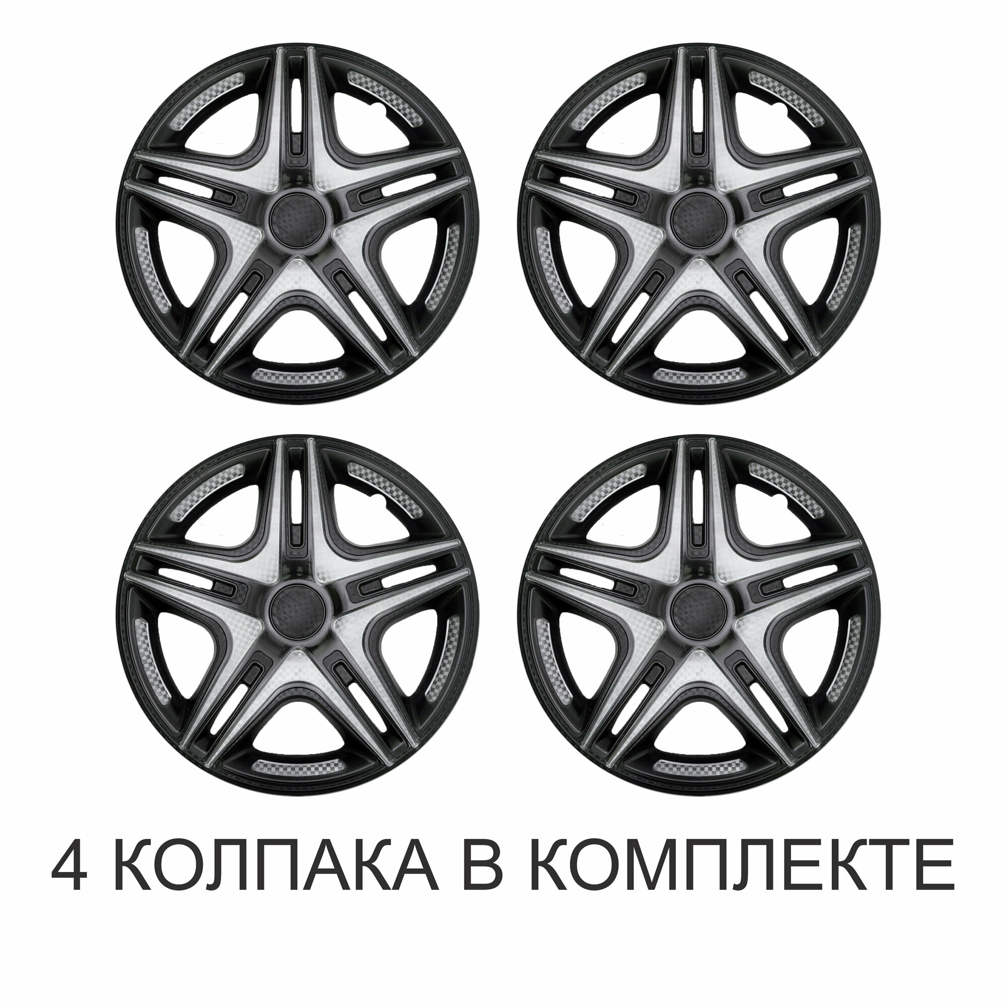 Колпаки R13 4шт на колеса авто карат р13, на диски радиус 13 дюймов, цвет серый, карбон.