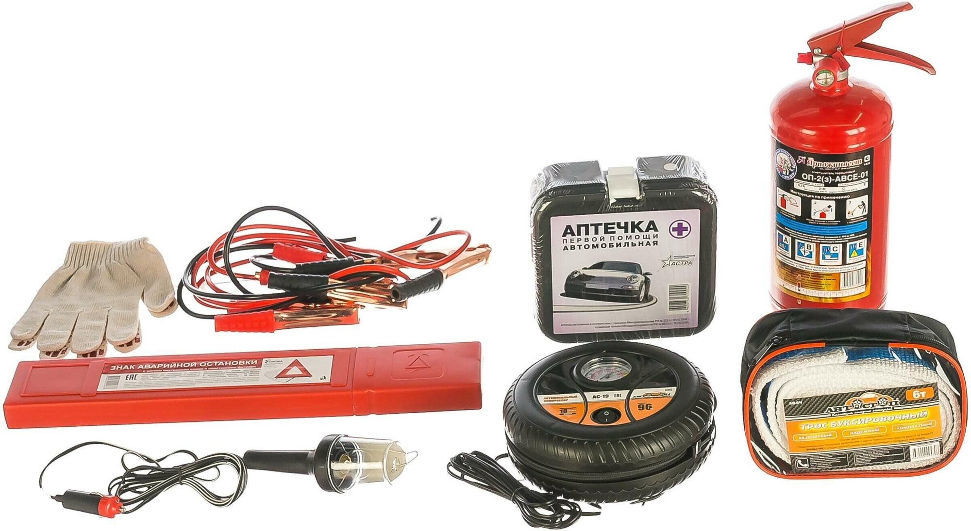 Автостоп H-2 Набор автомобилиста (огнетушитель ОП-2,аптечка,знак,трос 6т,провода,компрессор,переноска) автостоп