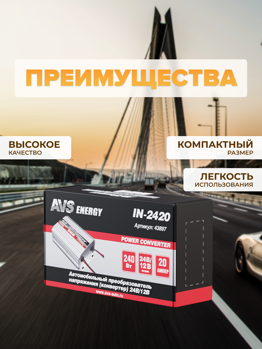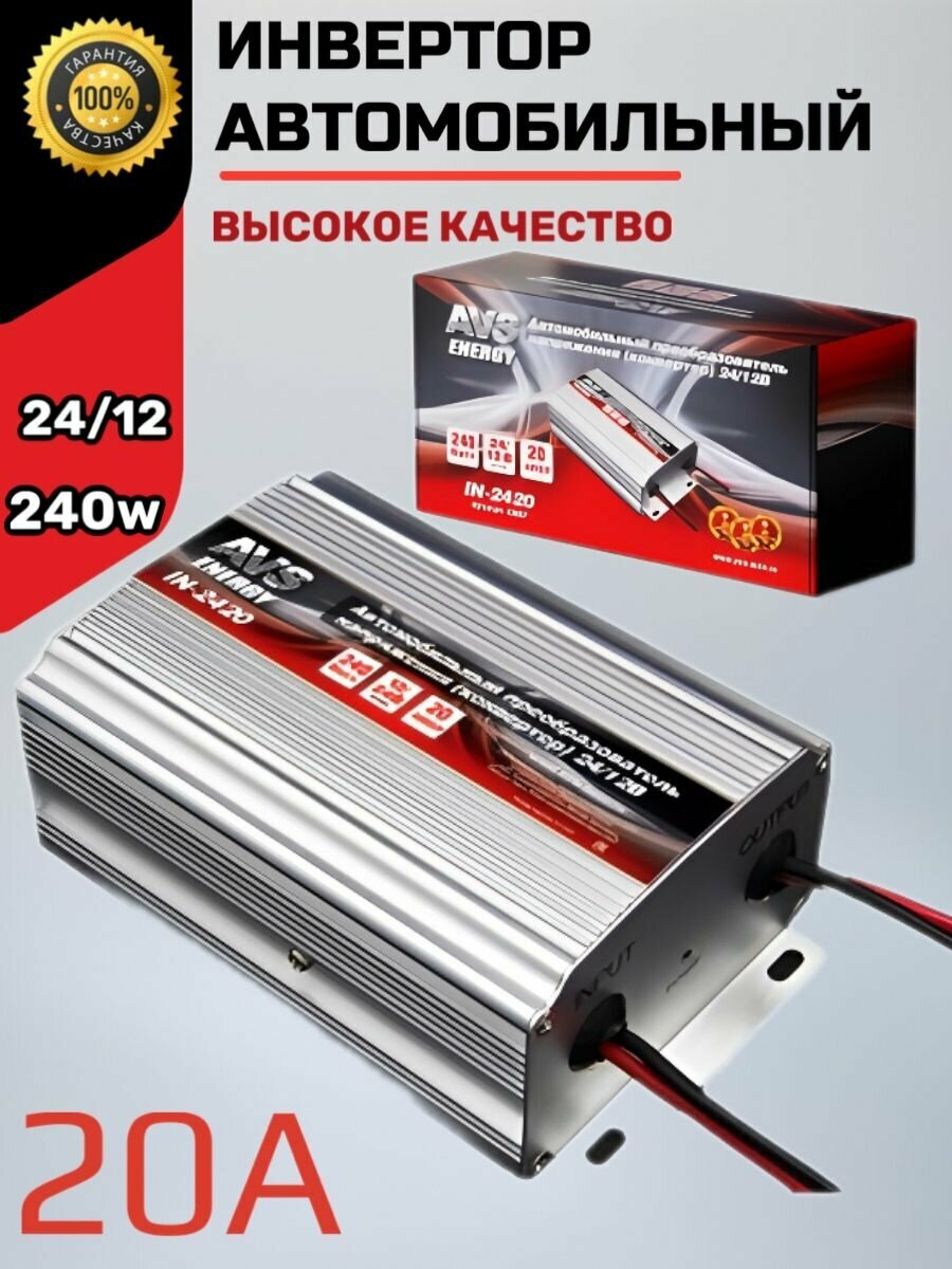 | Комплектация | Автомобильный инвертор 24/12V AVS IN-2420 (20A) - 1шт. |