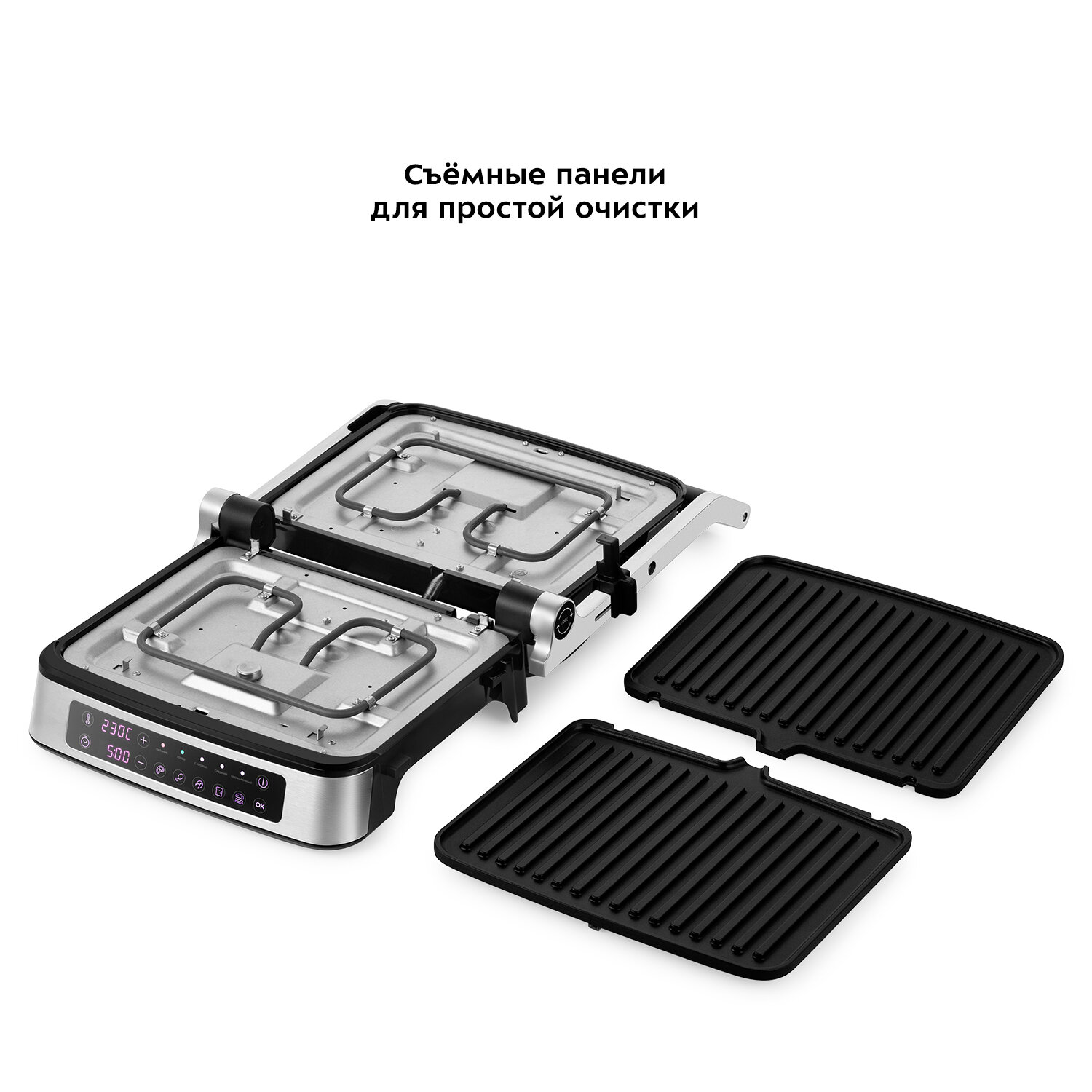 | Особенности | антипригарное покрытие / контактный гриль / крышка / поддон для сбора жира / съемные пластины |