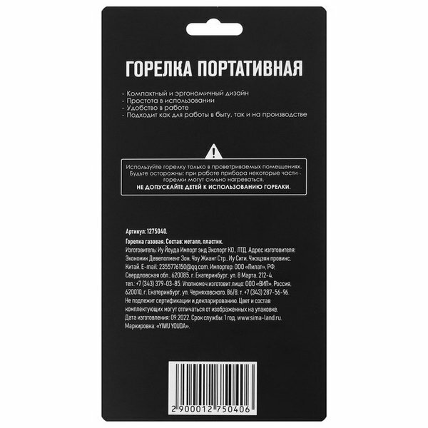 | Подробная комплектация | Газовая горелка-насадка - 1 шт, Блистерная упаковка - 1шт |