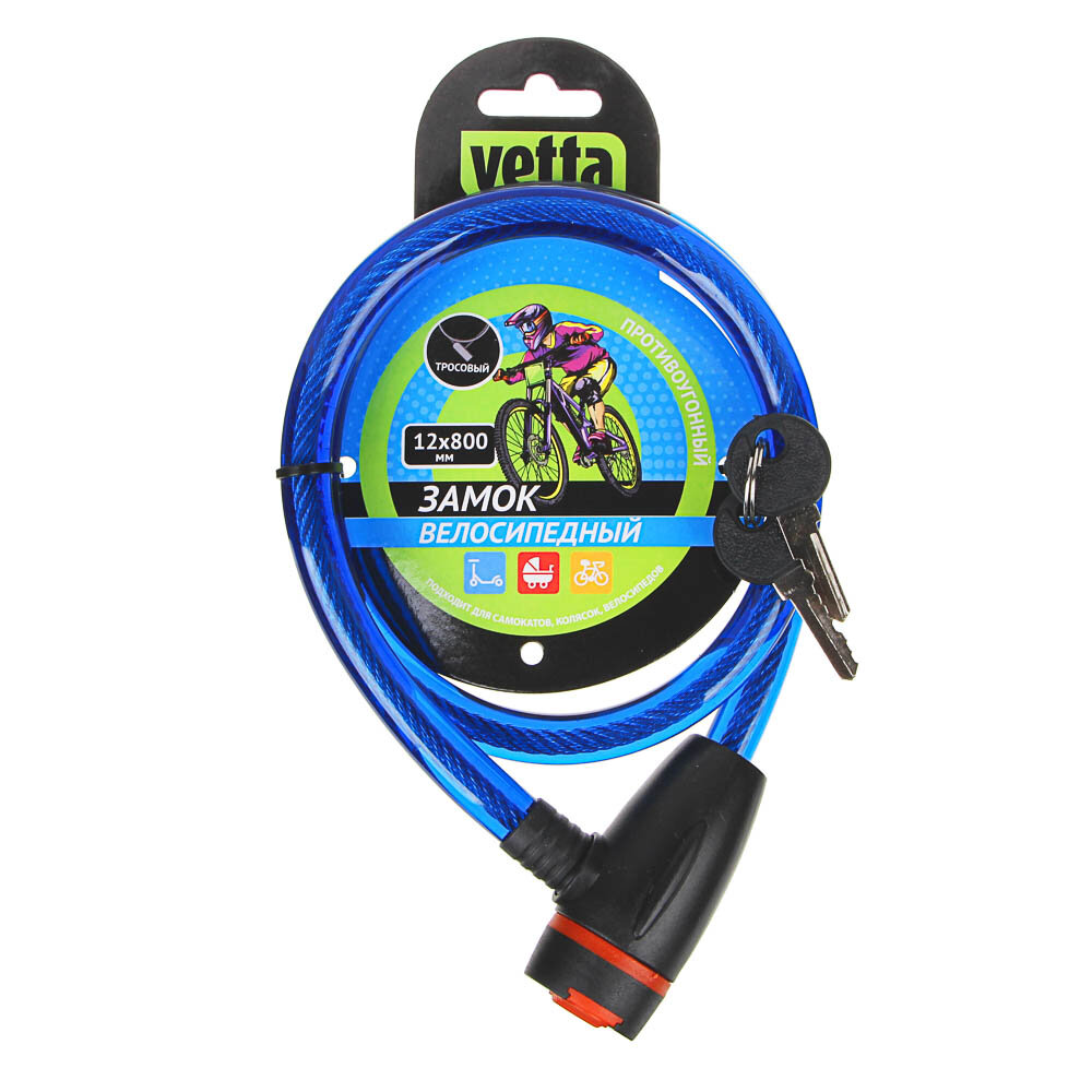 Замок велосипедный противоугонный тровосый VETTA 12*800мм (мет/пласт) (в ассортименте)