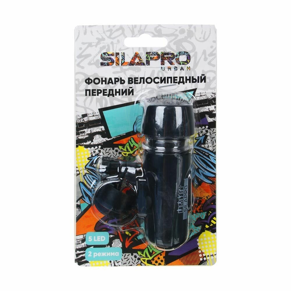 SILAPRO Фонарь велосипедный передний 2 режима, 5 диодов, пит. 4xААА, пластик, 10х3,3х6,5см, черный 195-018