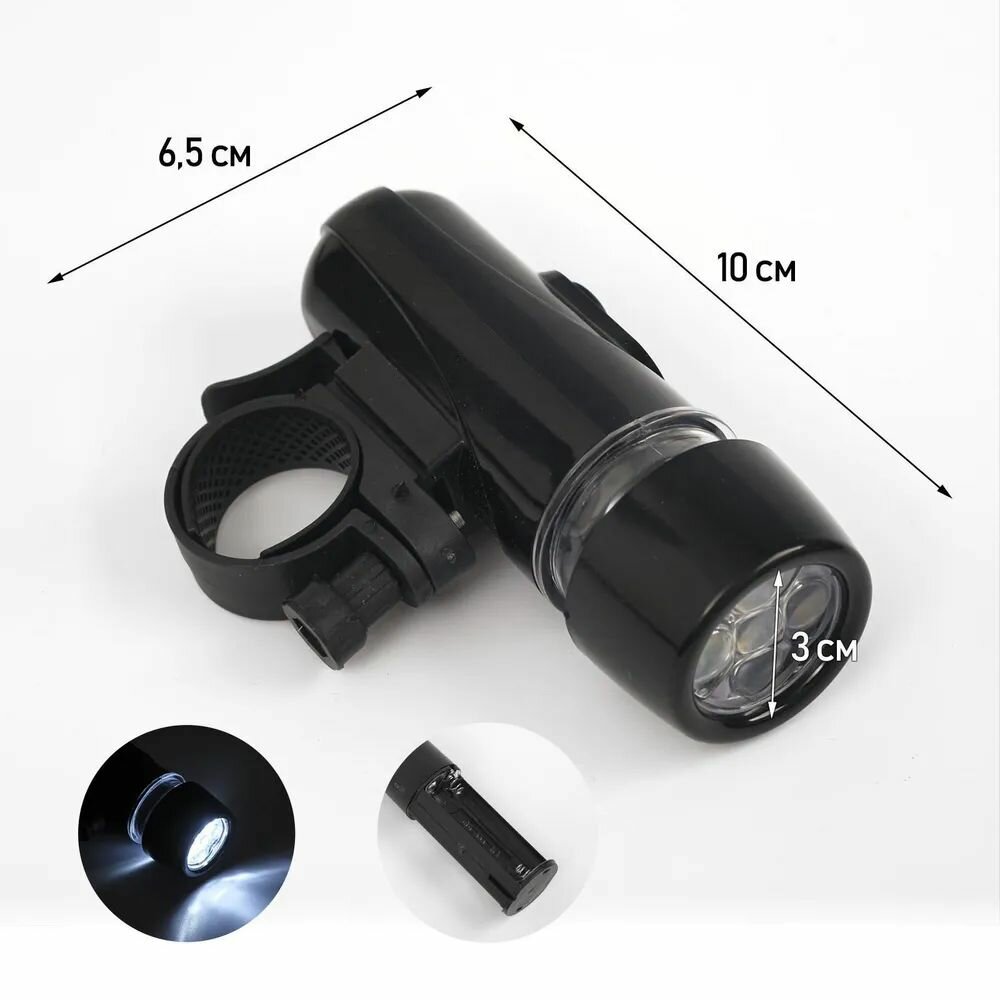 Фара велосипедная 5 диодов, 2 режима, 10,0х3,3х6,5см, питание 4xААА, пластик, черный