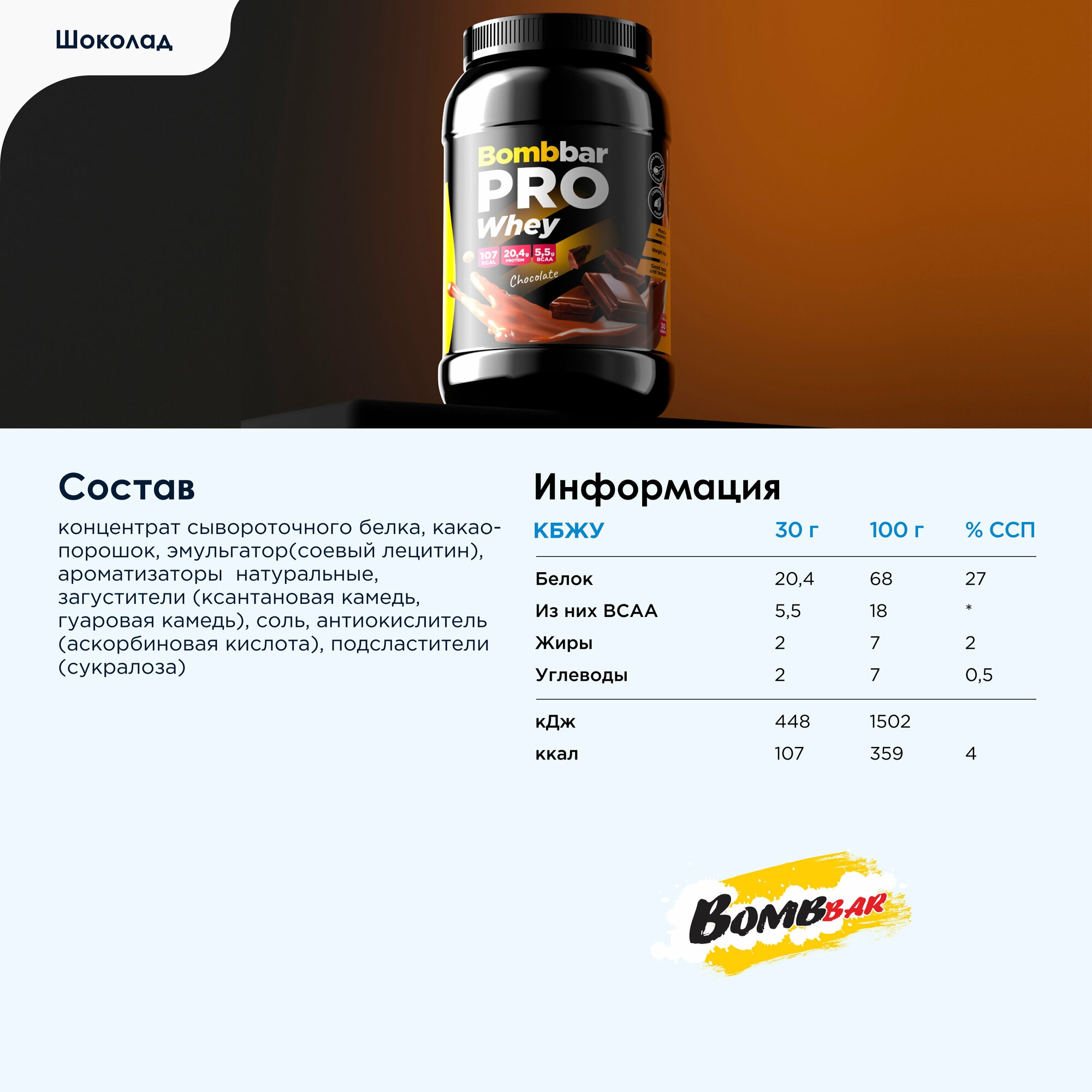 Bombbar Pro Whey Protein Протеиновый коктейль "Шоколад", 900 г