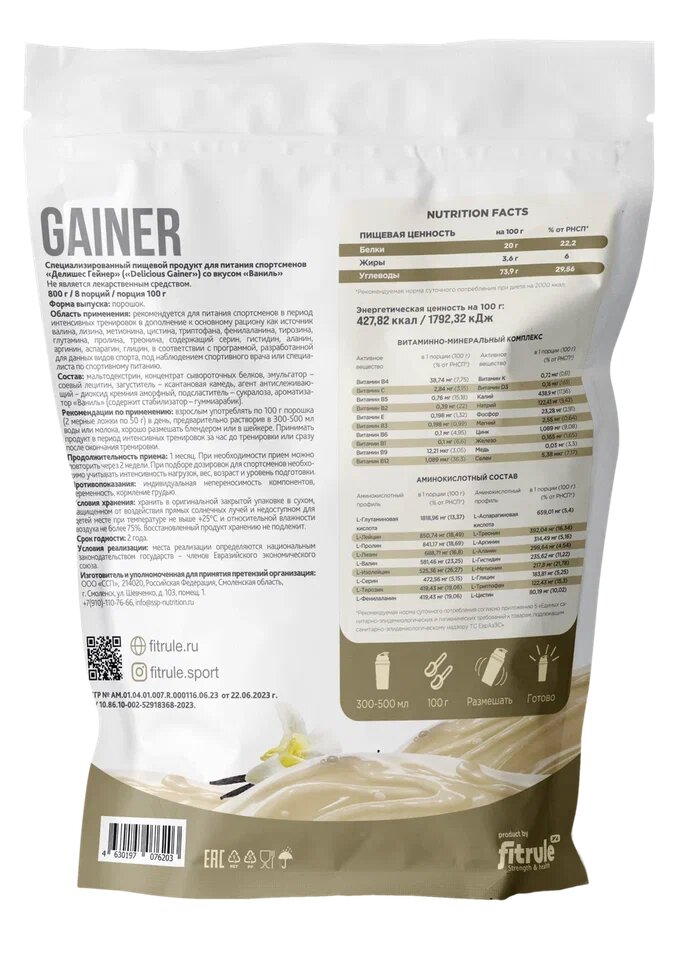 Гейнер для набора массы Fitrule Gainer, 800 гр, ваниль интересное: