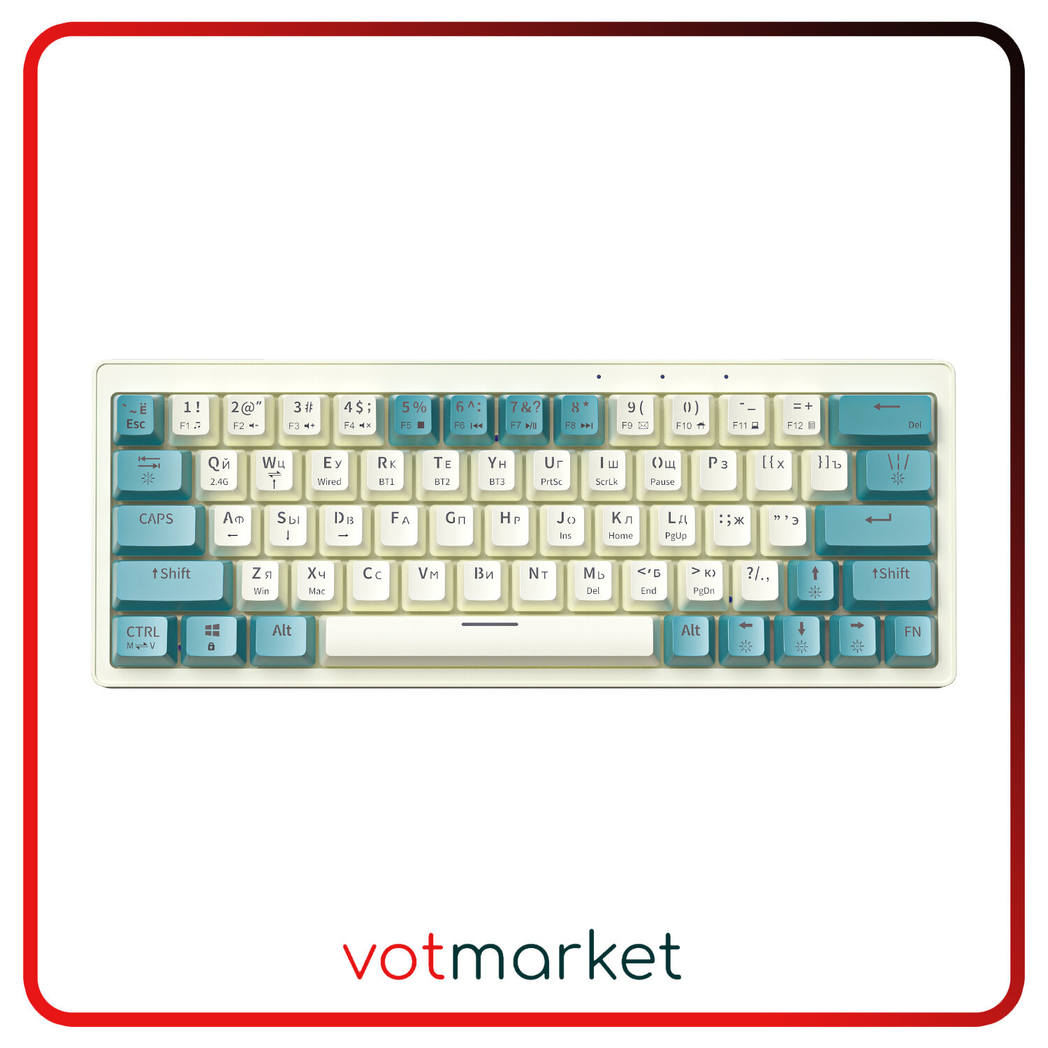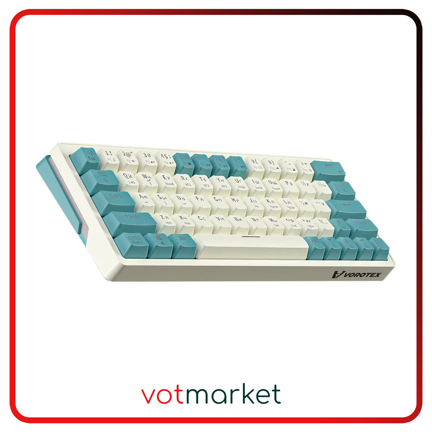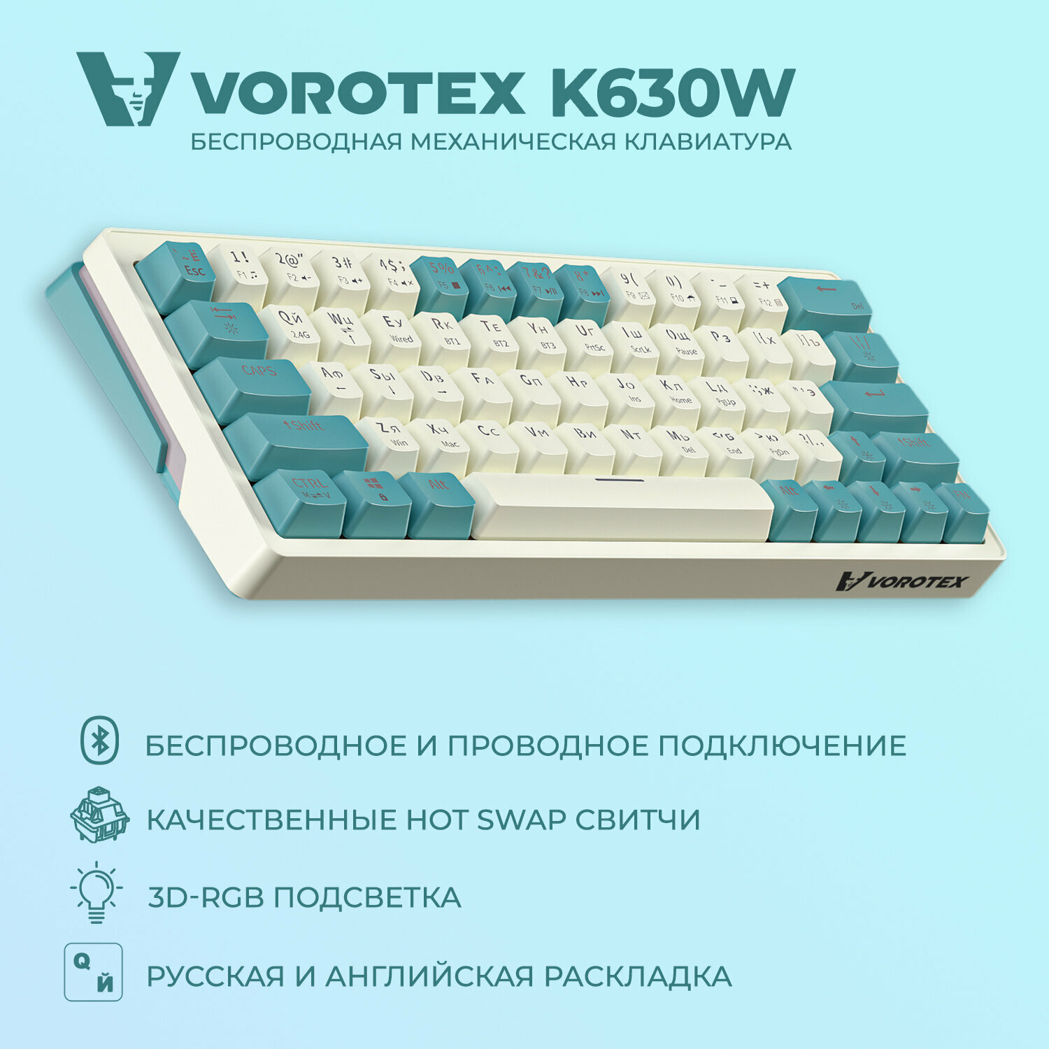 Ультракомпактная (60%) игровая беспроводная клавиатура VOROTEX K630W Yellow Switch с русской раскладкой, цвет бежевый/зеленый