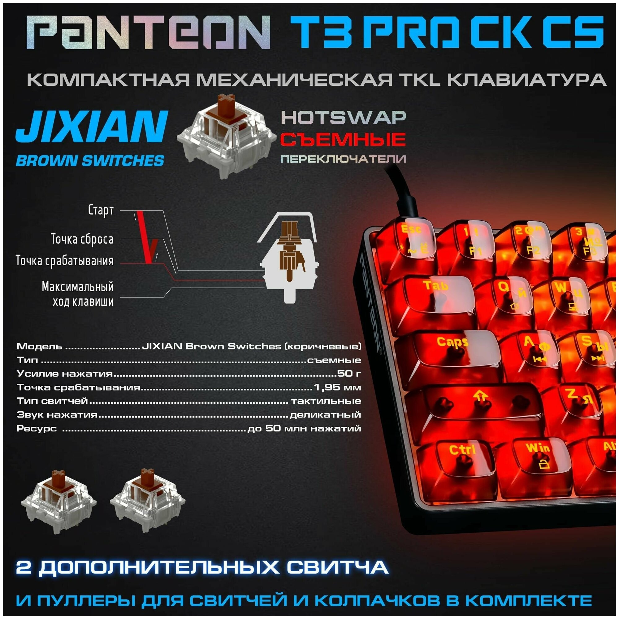 PANTEON T3 RS HS RB Black-Red (46) Механическая клавиатура ( Jixian Red, 61 кл, HotSwap, USB)