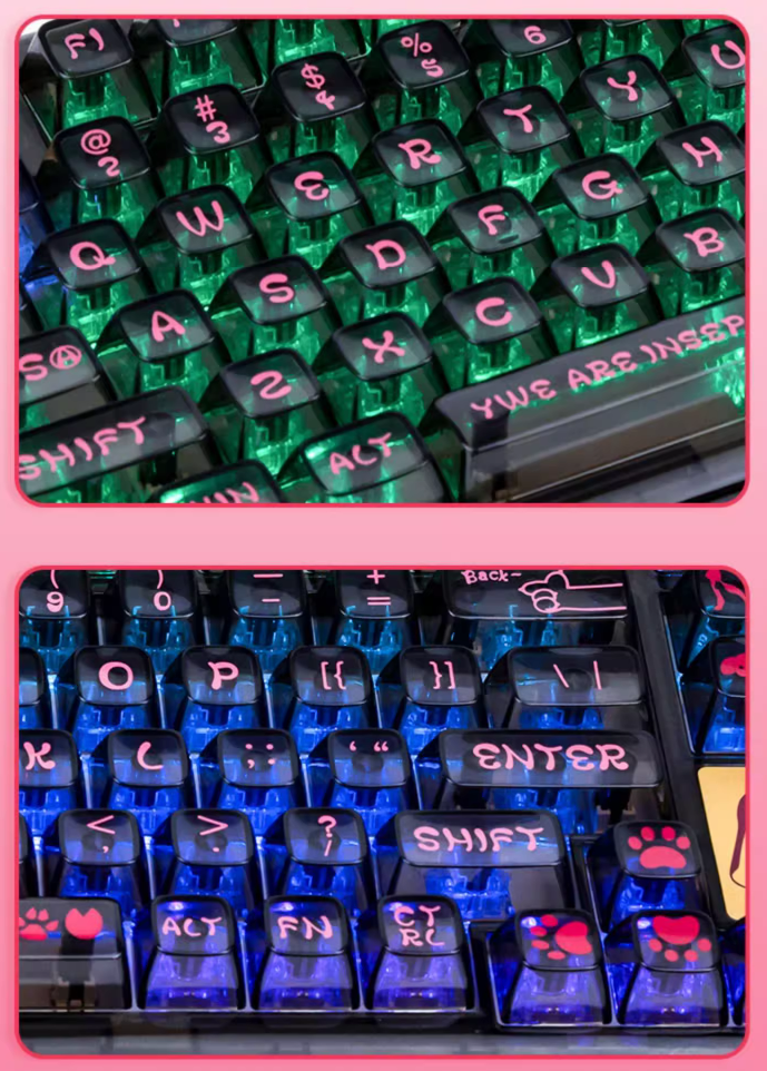 Прозрачная Беспроводная механическая клавиатура YUNZII Coolkiller CK75 персиково-розового цвета с акриловой прокладкой