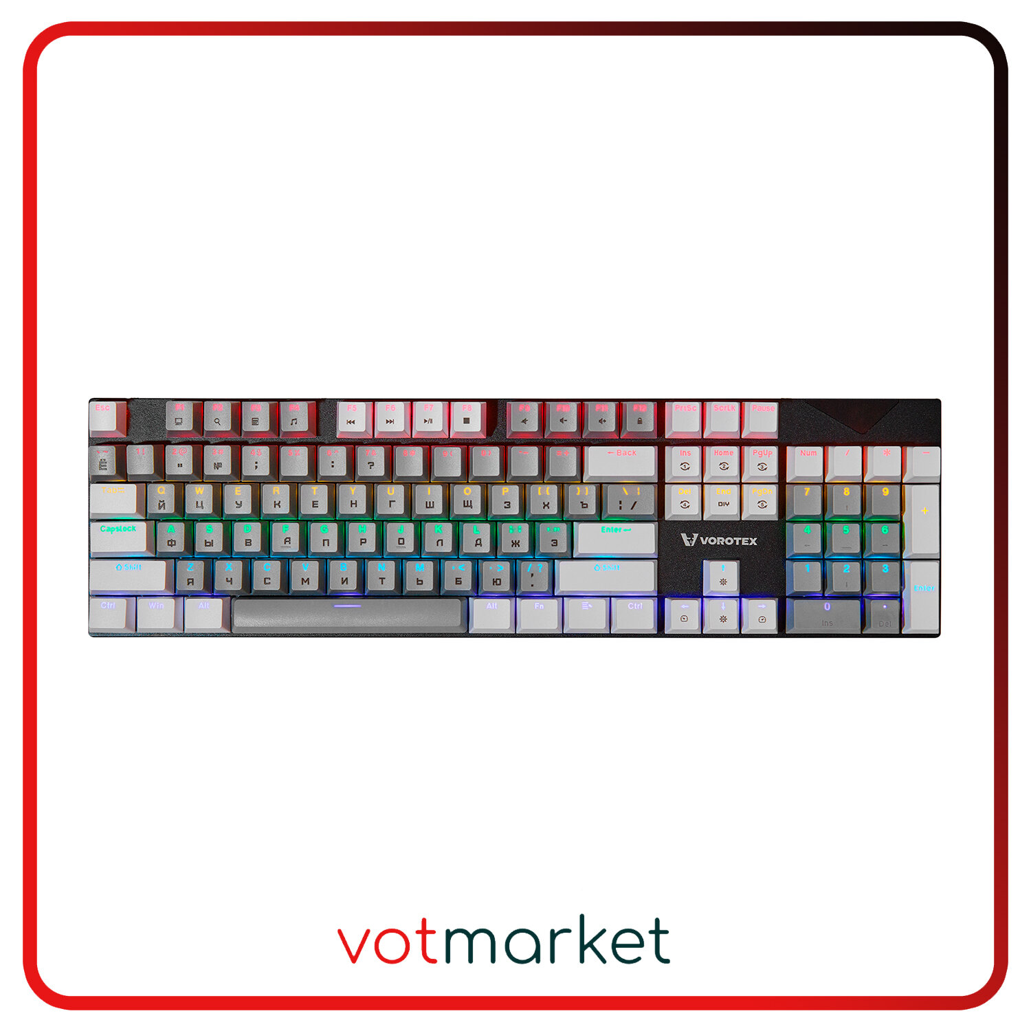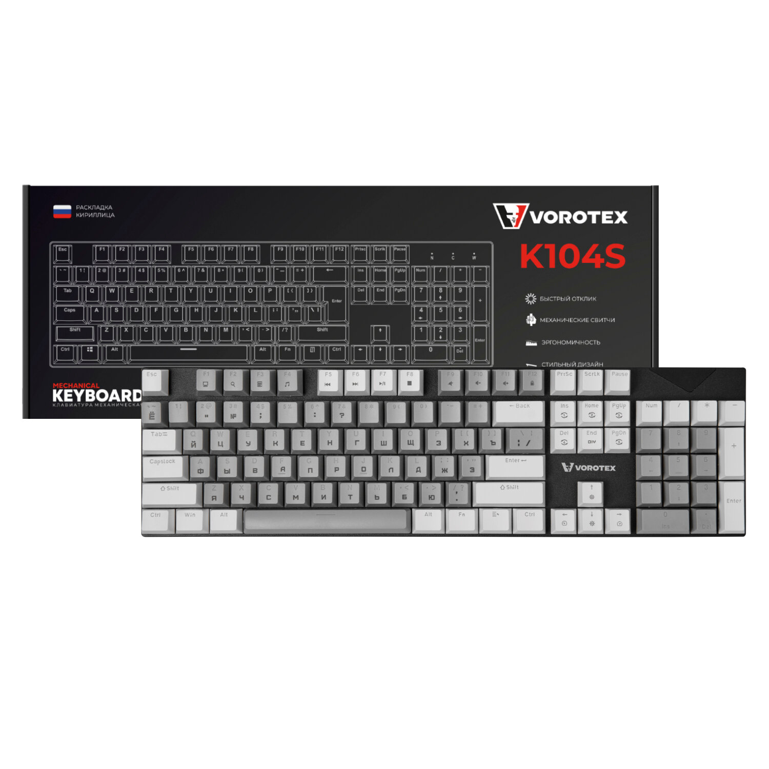 Клавиатура игровая проводная VOROTEX K104S Red Switch, русская раскладка (Чёрный, белый)