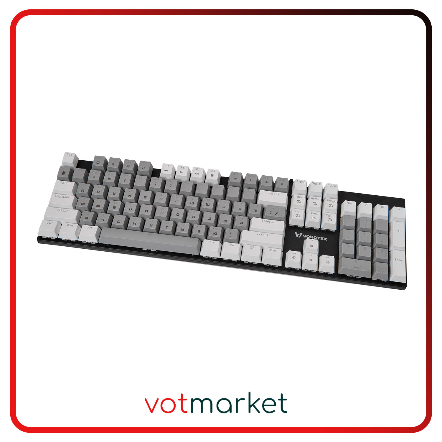 Клавиатура игровая проводная VOROTEX K104S Red Switch, русская раскладка (Серый,белый)