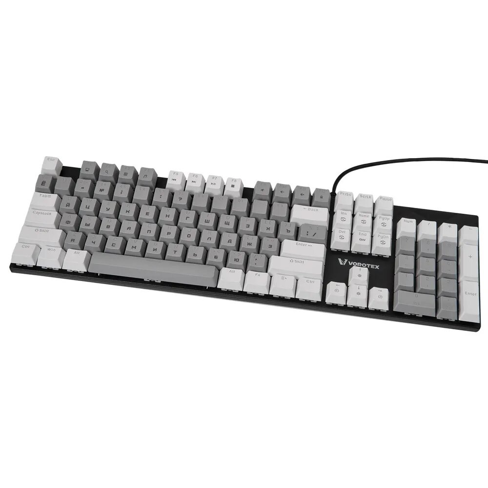 Клавиатура игровая проводная VOROTEX K104S Blue Switch, русская раскладка (Чёрный, белый)