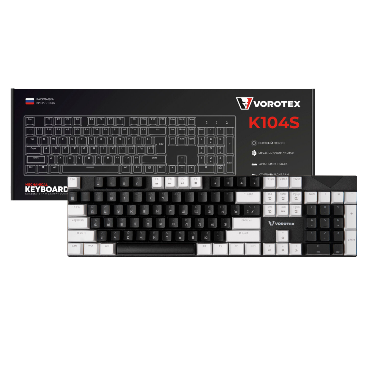 Клавиатура игровая проводная VOROTEX K104S Blue Switch, русская раскладка (Чёрный, белый)