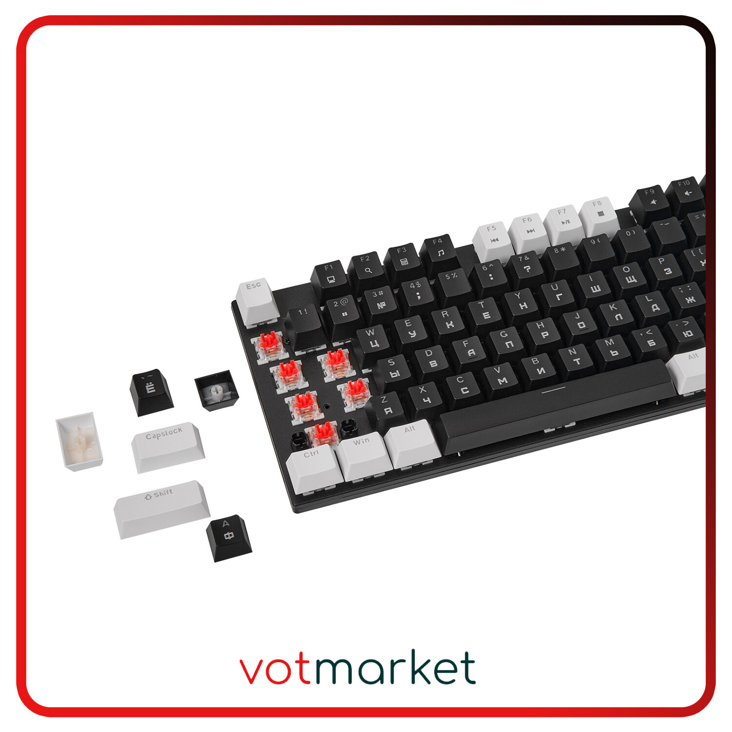 Клавиатура игровая проводная VOROTEX K104S Red Switch, русская раскладка (Чёрный, белый)