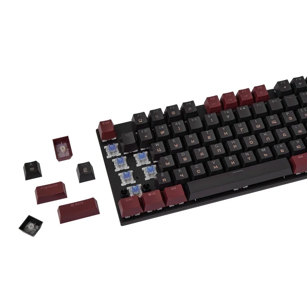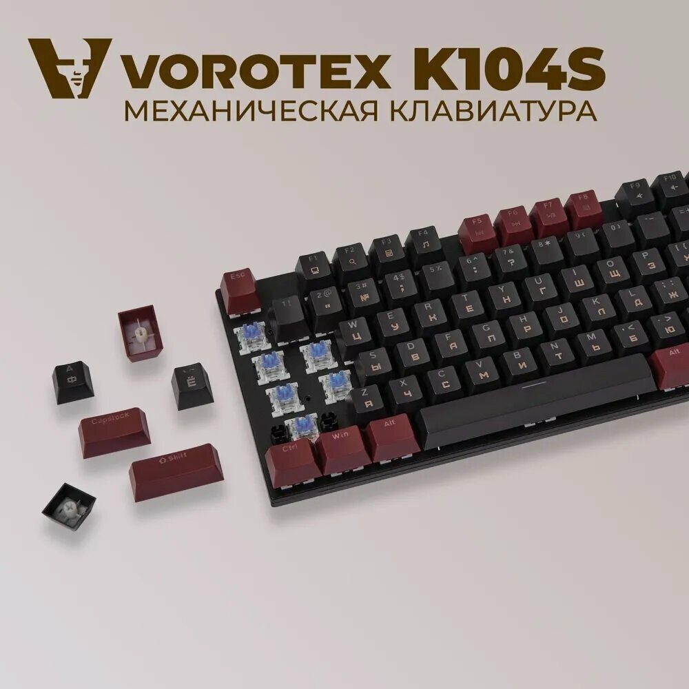 Клавиатура игровая проводная VOROTEX K104S Blue Switch, русская раскладка (Чёрный, бордовый)