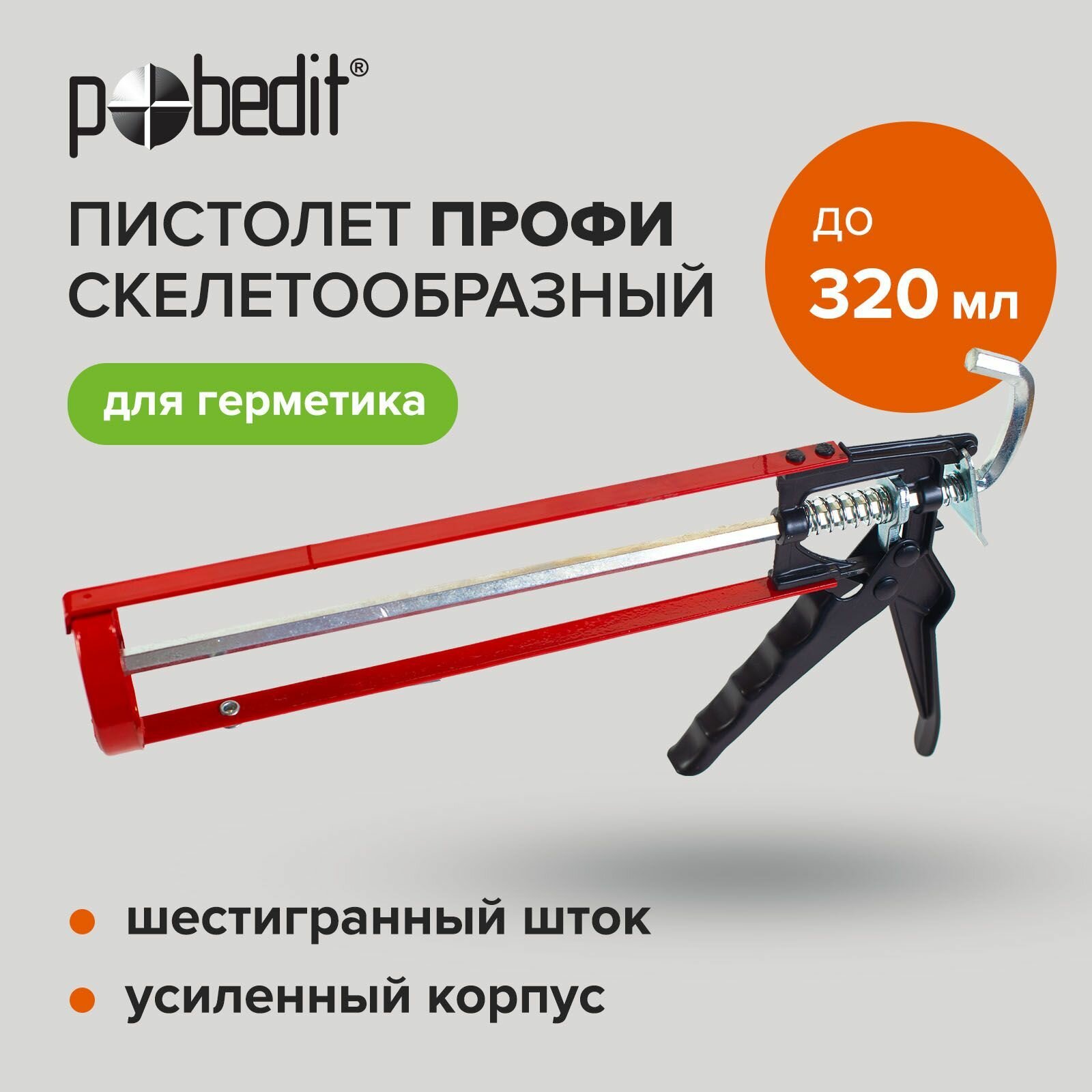 Купить Пистолет для герметика скелетный, усиленный 320 мл 7,7 мм шестигранным стержнем Pobedit