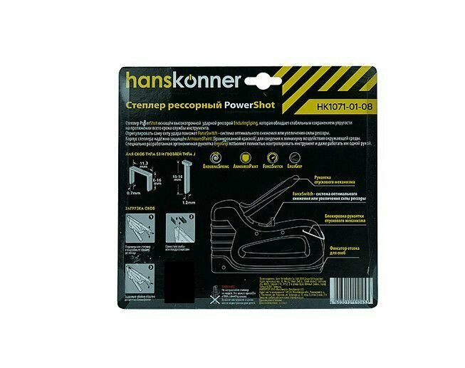 Купить Степлер Hanskonner HK1071-01-08 усиленный, рессорный, скобы 53(6-16мм), гвозди 300(15-16мм)
