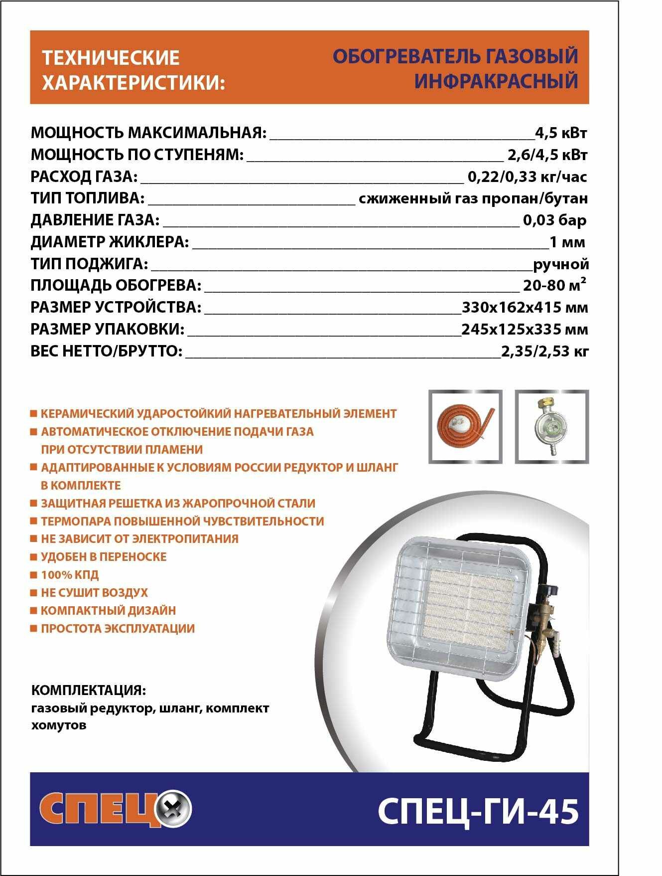 Спец ГИ-45 обогреватель инфракрасный газовый (4,5 кВт) / спец ГИ-45 обогреватель инфракрасный газовый (4,5 кВт) интересное: