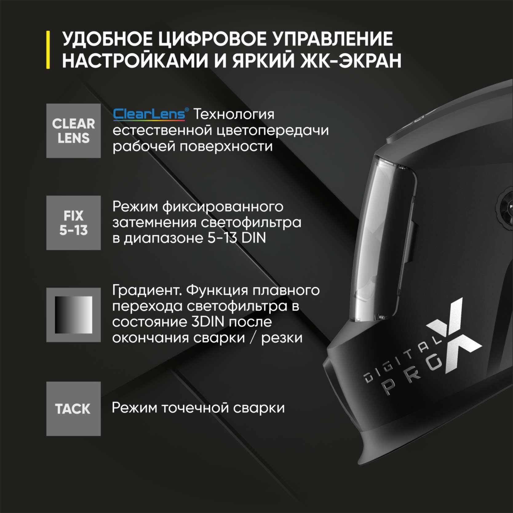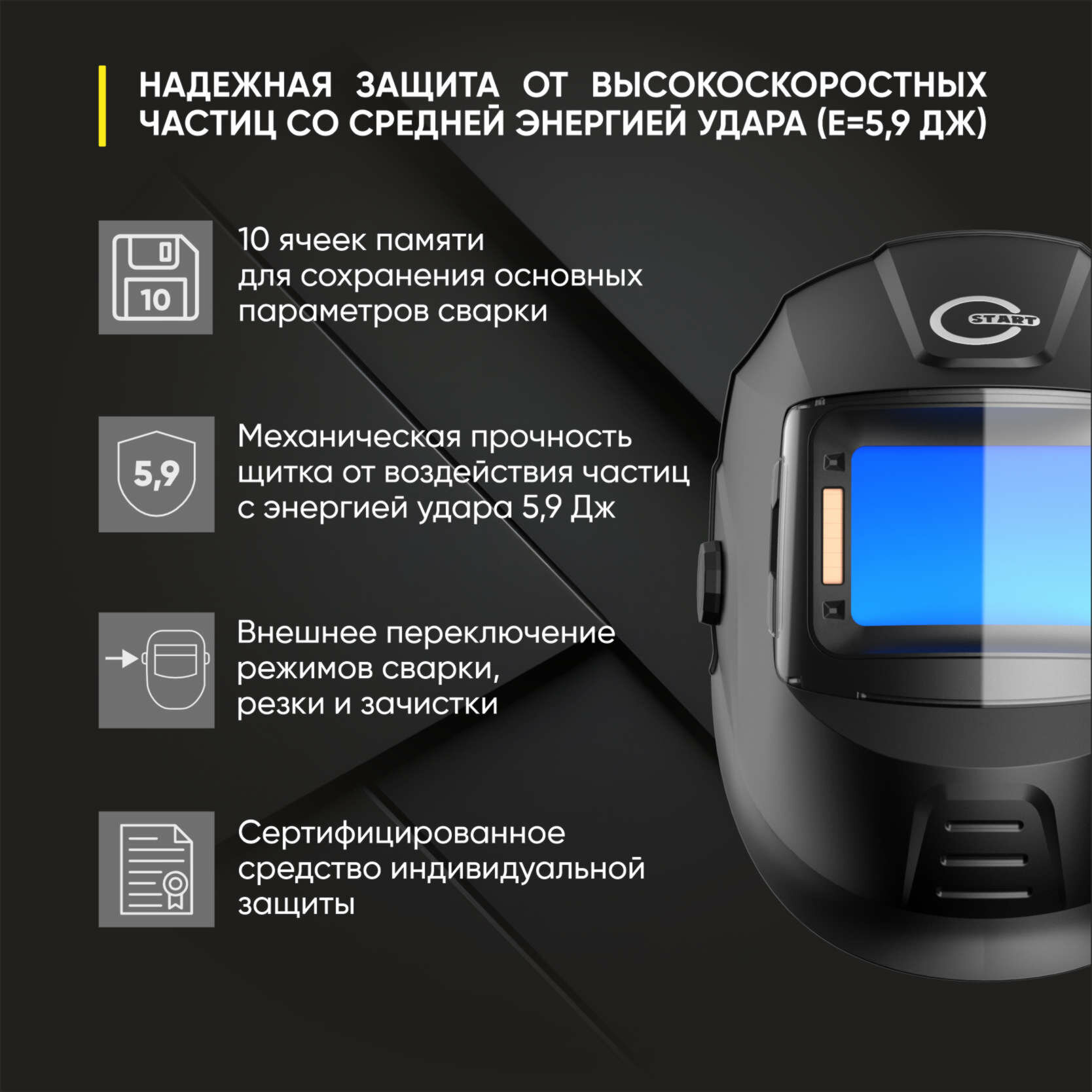 Маска сварщика хамелеон DIGITAL X PRO (cмотровое окно 108*74 мм) 51ST02X, автоматический светофильтр, сменные батареи, Start интересное: