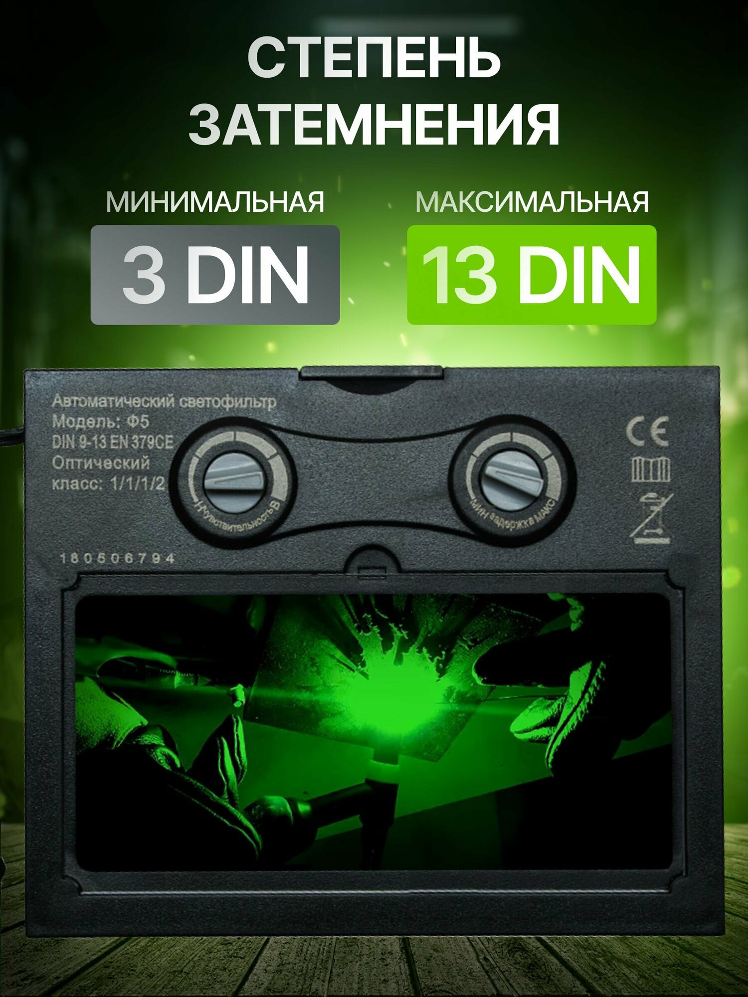 | Минимальная степень затемнения | 3 DIN |