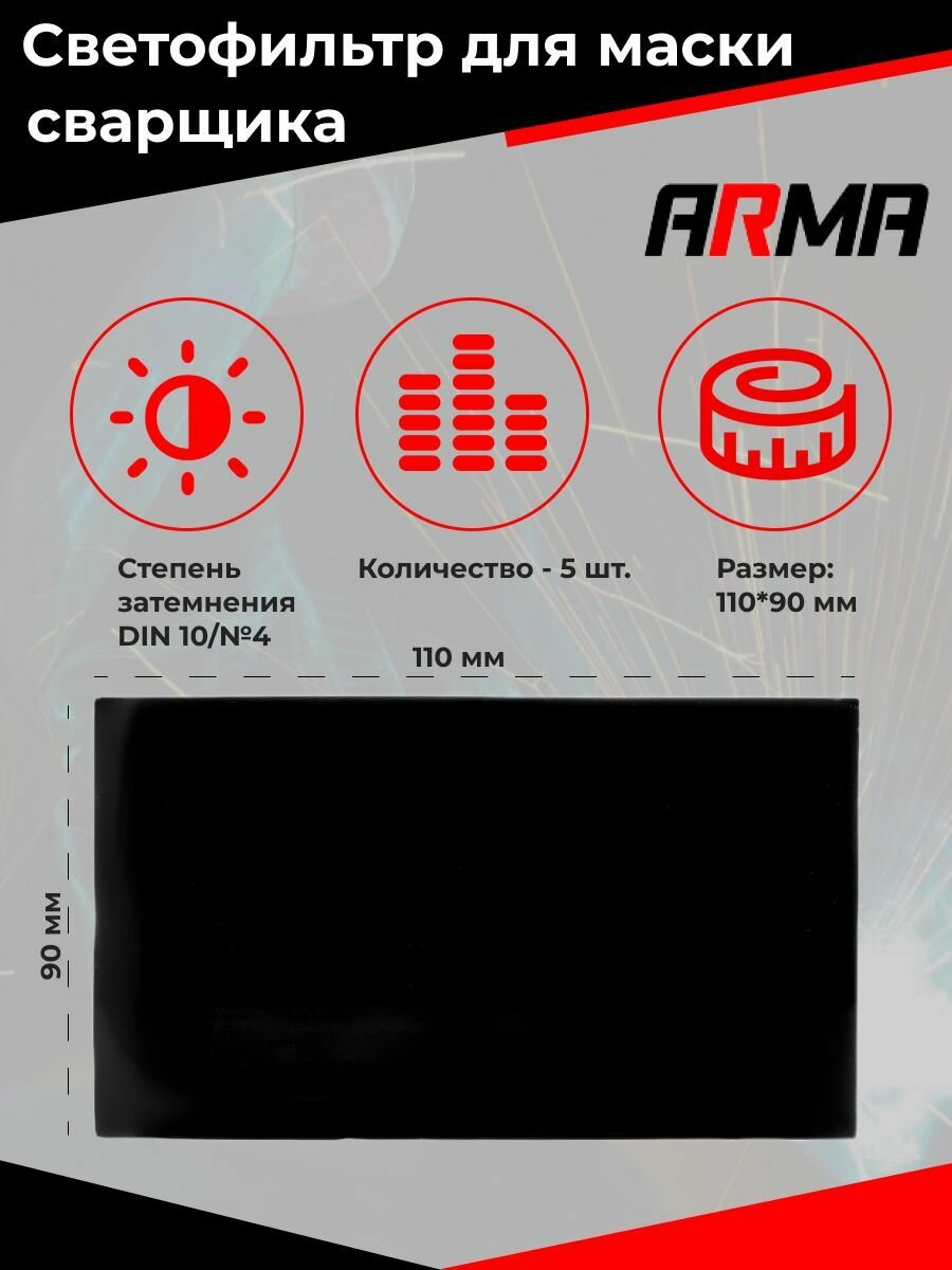 Светофильтр (стекло) для маски сварщика 110х90 #10 ARMA (5шт) интересное: