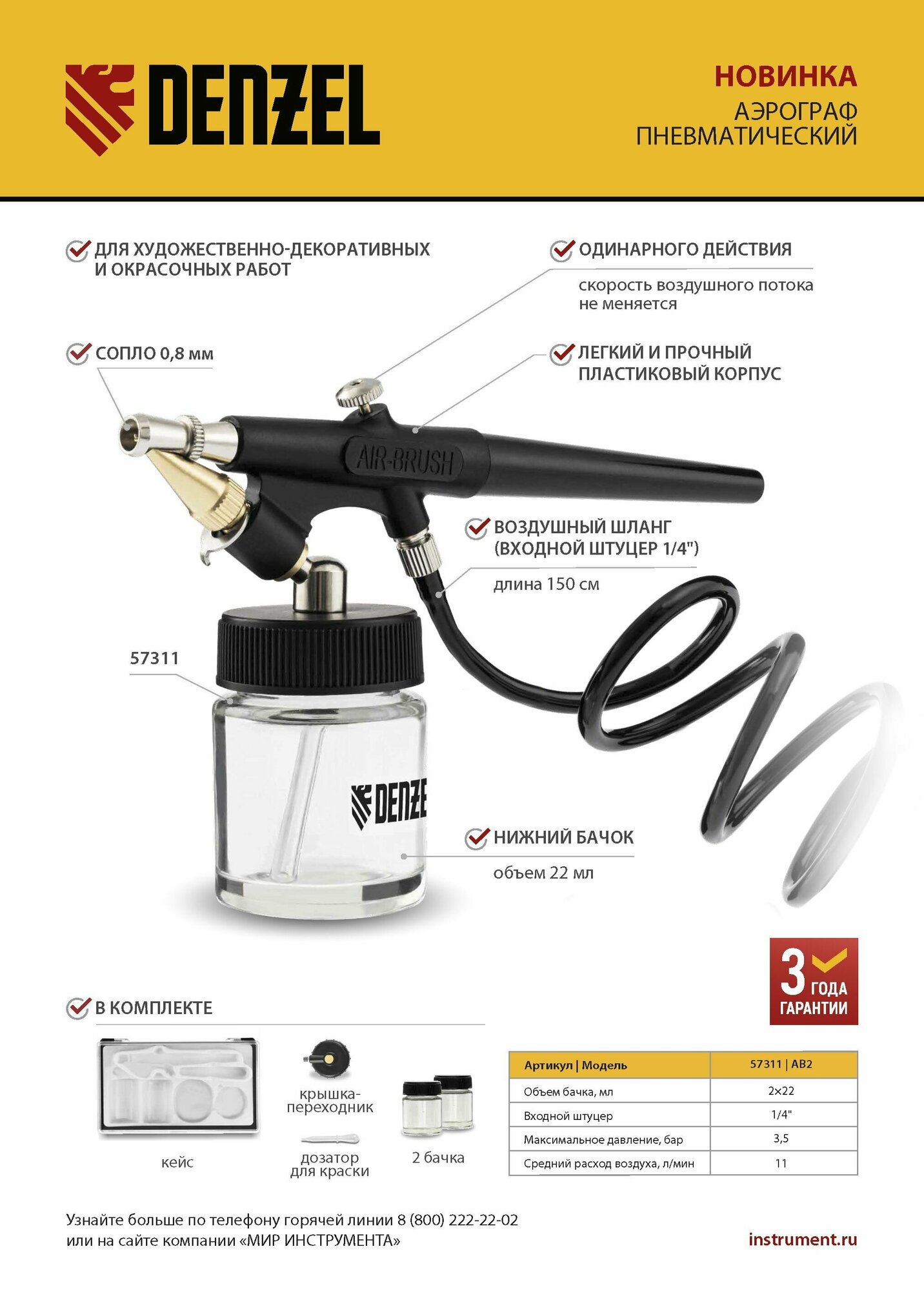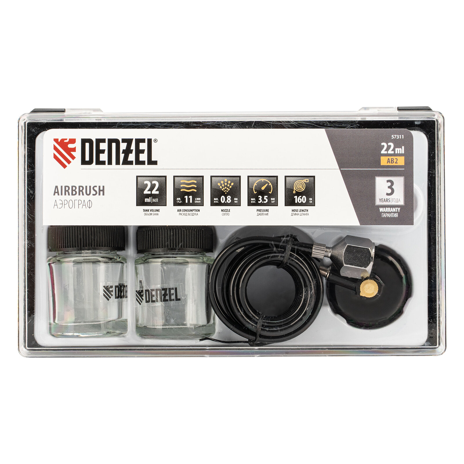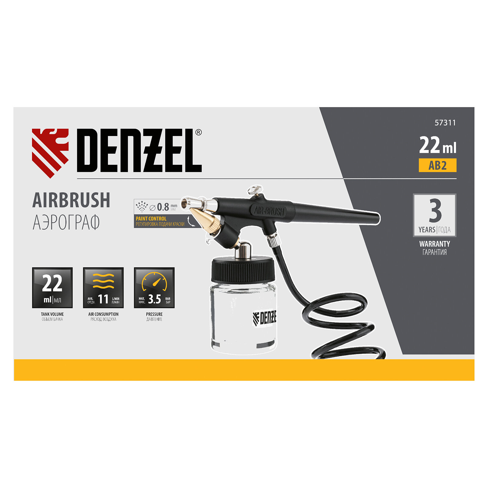 Аэрограф с нижним бачком AB2, 0,8мм, 22мл, 11л/мин Denzel 57311 интересное: