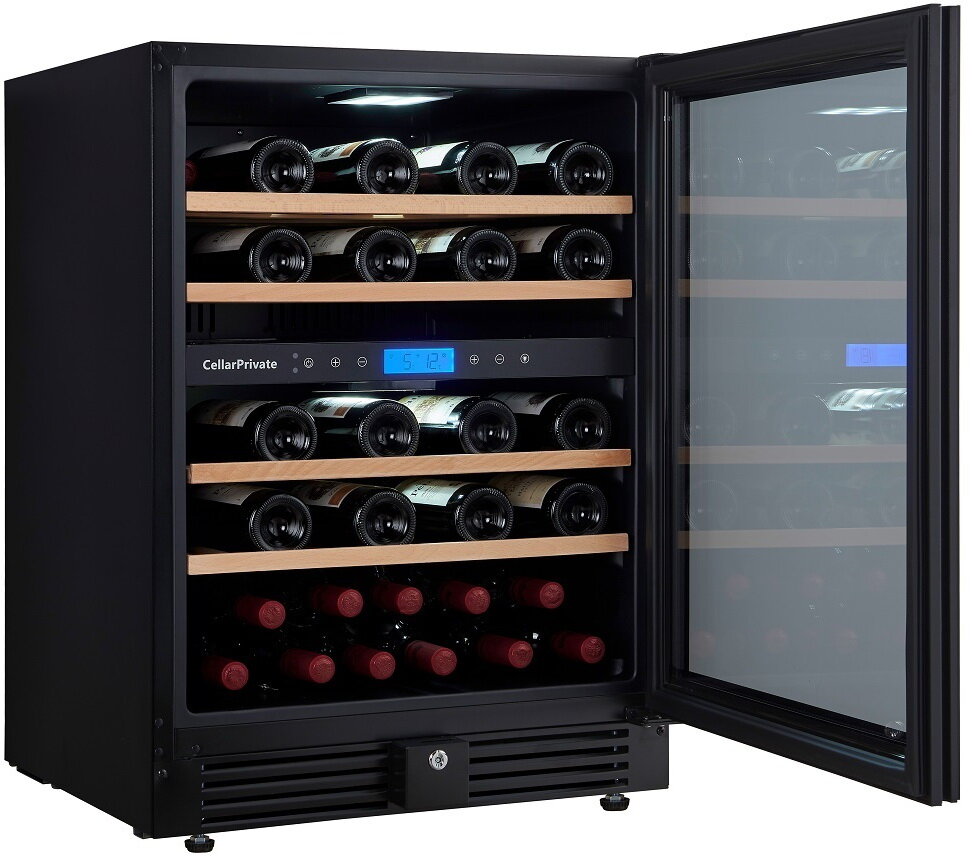 Винный шкаф Cellar Private CP043-2TBH, встраиваемый, двухтемпературный, скрытая ручка, 44бут, черный.