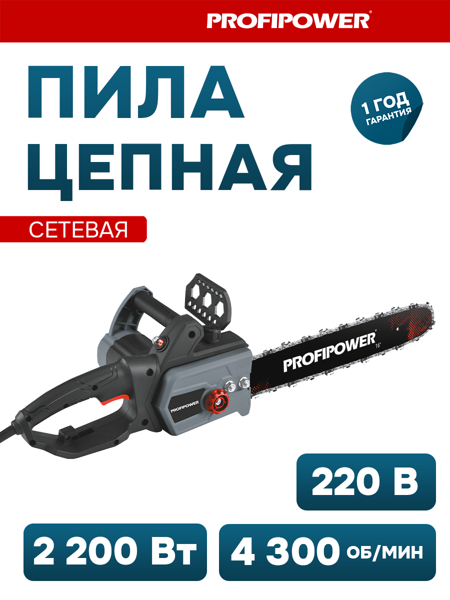 Пила цепная сетевая Profipower EC-2200 (16", 2200 Вт, с механической подачей масла) интересное: