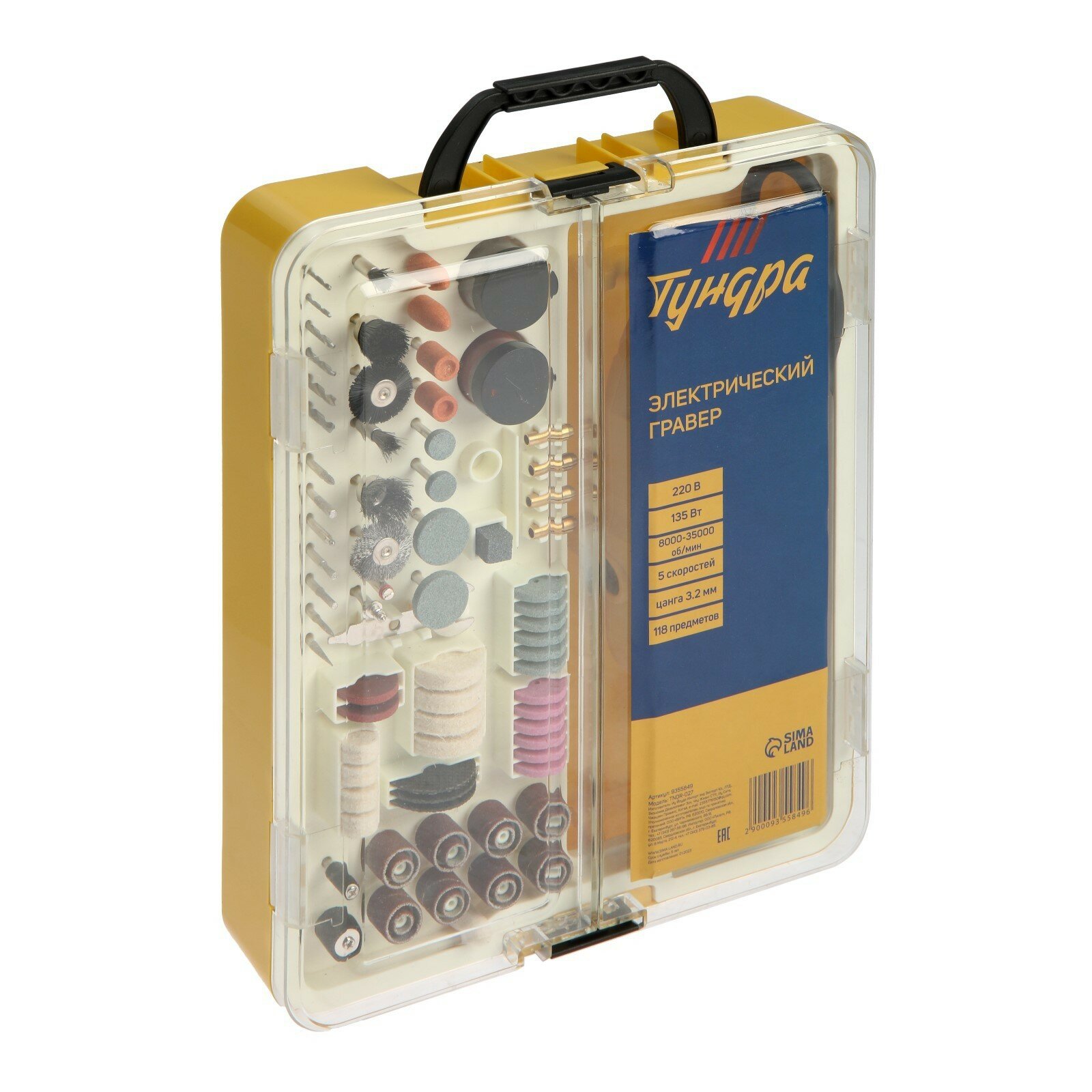 Купить Гравер электрический тундра, 135 Вт, 8000-35000 об/мин, цанга 3.2 мм, 5 ск., 118 предметов
