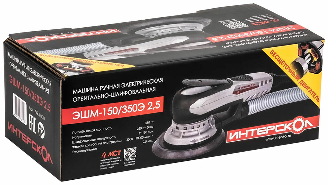 Бесщеточная эксцентриковая шлифмашина Интерскол ЭШМ-150/350Э 2.5 (799.1.0.70)