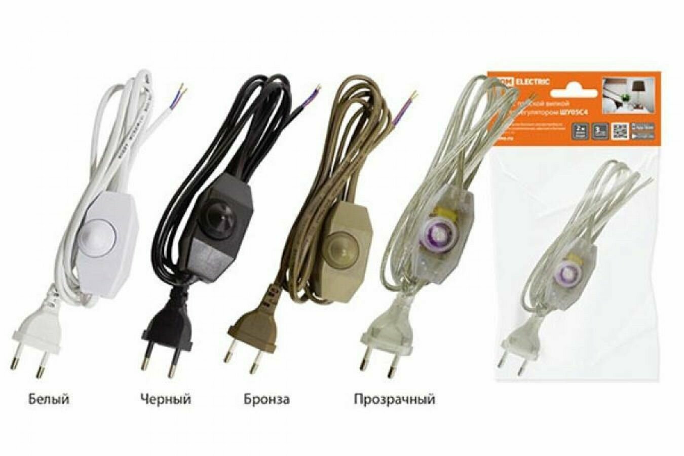 TDM Шнур для светильников 3,5м 2х0,75мм2 с плоской вилкой (евровилка) и ножным выключателем, Белый интересное: