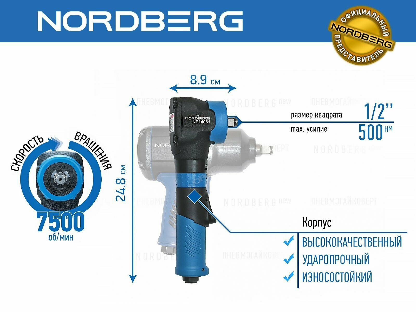 Угловой ударный пневмогайковерт NORDBERG NP14061 интересное: