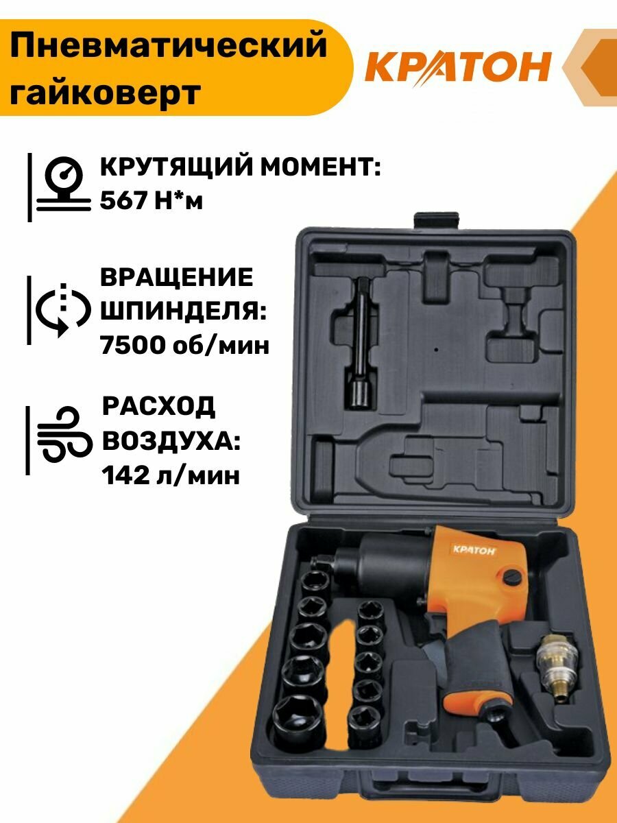 Гайковерт пневматический с набором ударных головок Кратон AIW-02S 3 01 07 012 интересное: