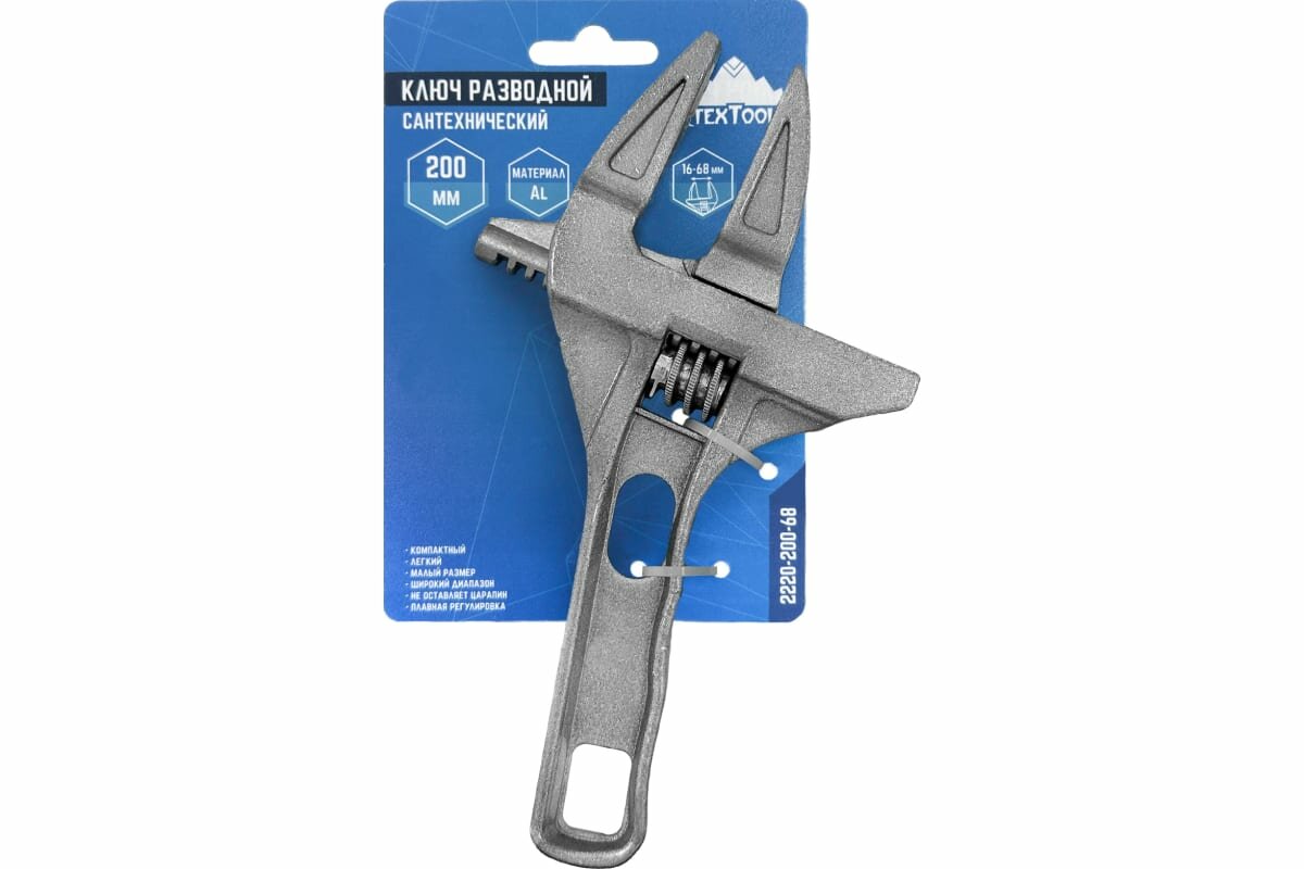 vertextools ключ разводной сантехнический 200мм увеличенный диапазон раскрытия 16-68мм 2220-200-68
