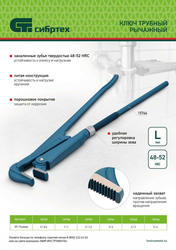 Ключ трубный рычажный Сибртех №0 литой 15757 интересное: