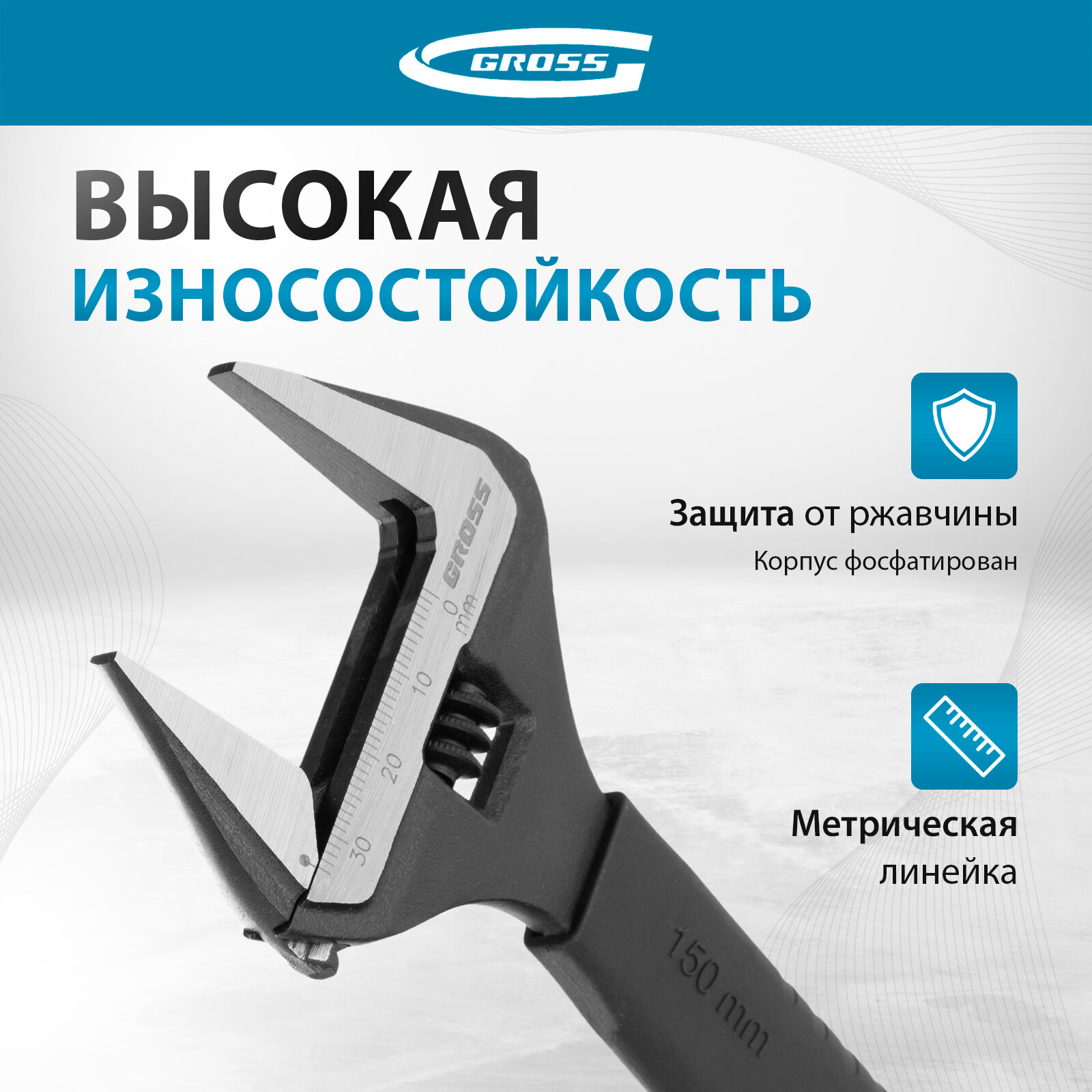 Купить Ключ разводной 150 мм CrV тонкие губки защитные насадки Gross 15567