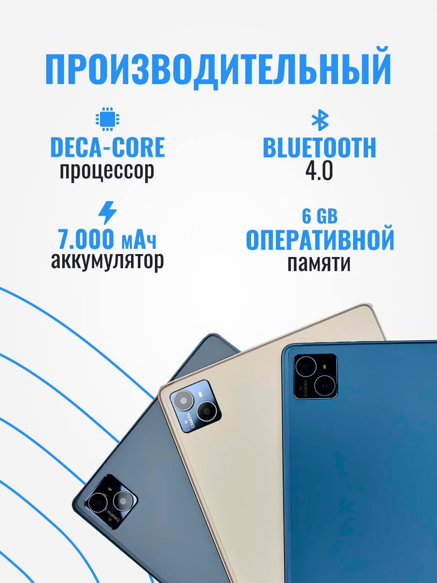 | Комплектация | 1. Планшет + клавиатура; 2. Чехол книжка; 3. Защитное стекло; 4. Стилус + зарядное устройство; 5.Инструкция на русском языке |